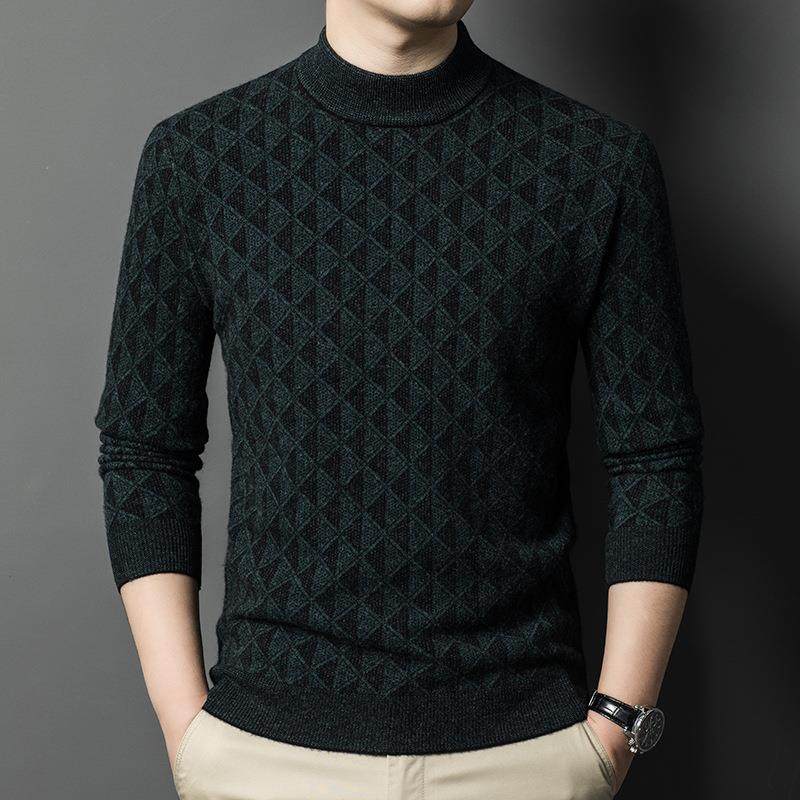 头加厚款 24152 中年男士 套领时尚 KK格子毛衣保羊暖毛 羊绒衫 冬圆装