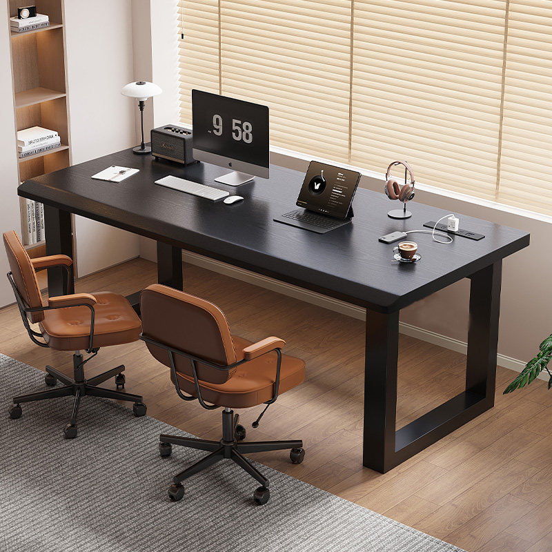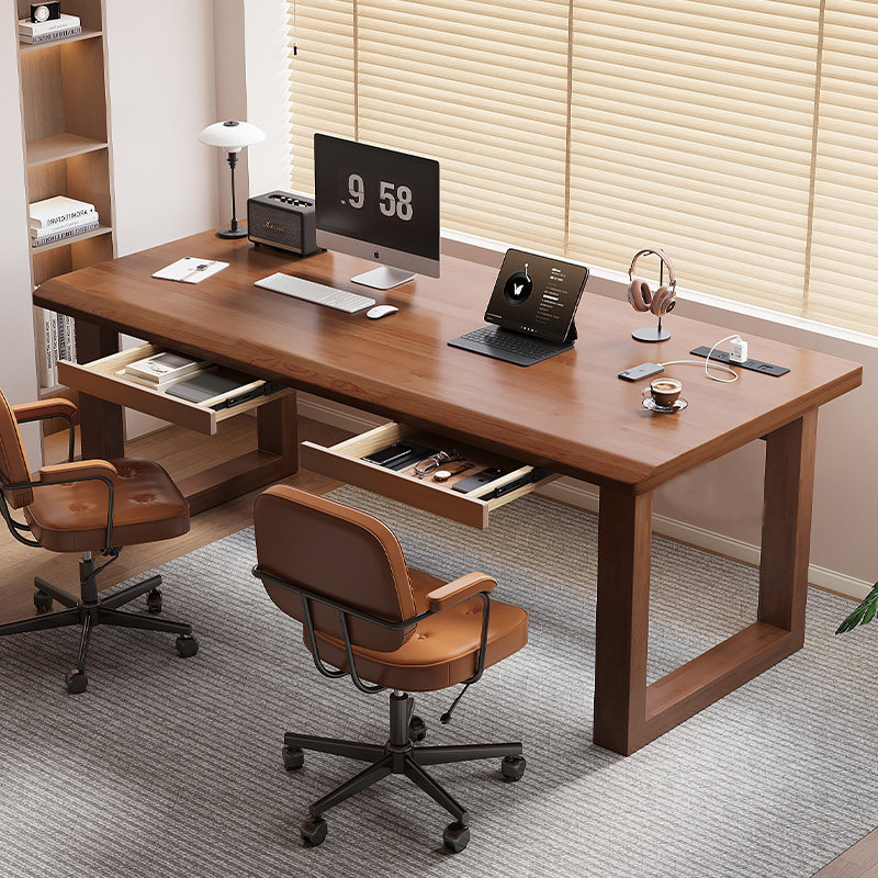 全实木电脑桌学生家用简易书桌写字桌台式 一体办公桌双人电竞桌子