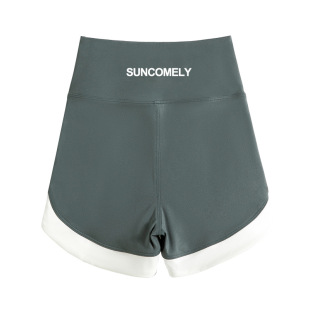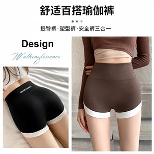 收腹提臀瑜伽裤 打底裤 夏季 大码 高腰撞色拼接运动短裤 三分鲨鱼裤