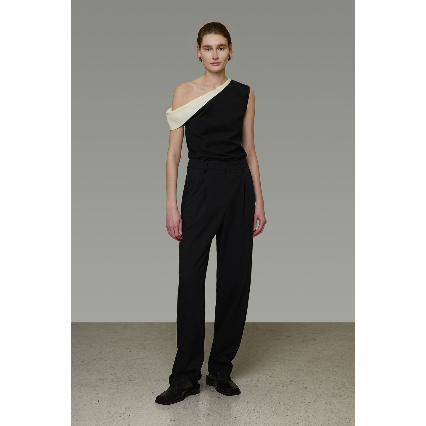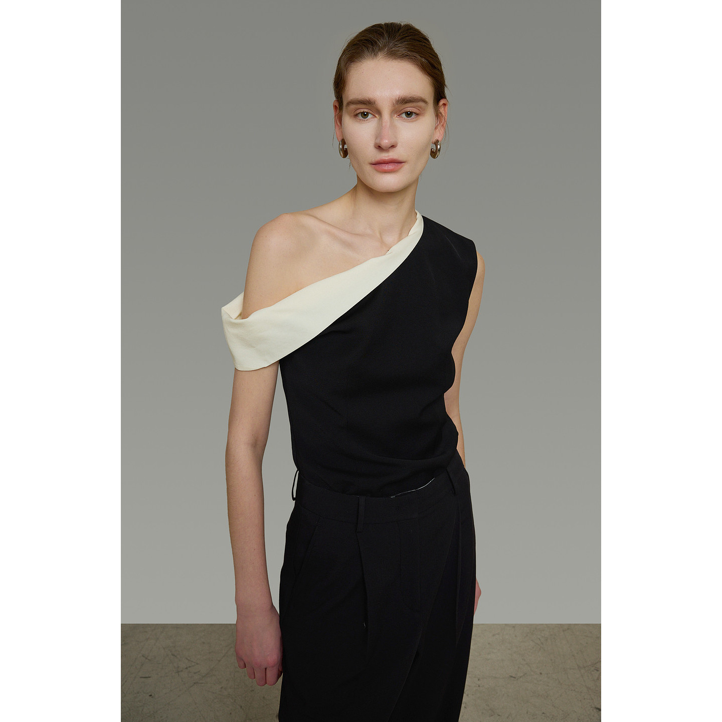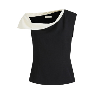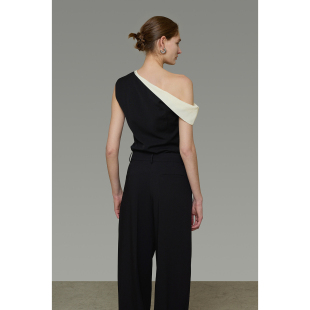 气质T恤 黑白撞色上衣女斜肩高级设计感法式 UNSPOKEN2026夏装 新款