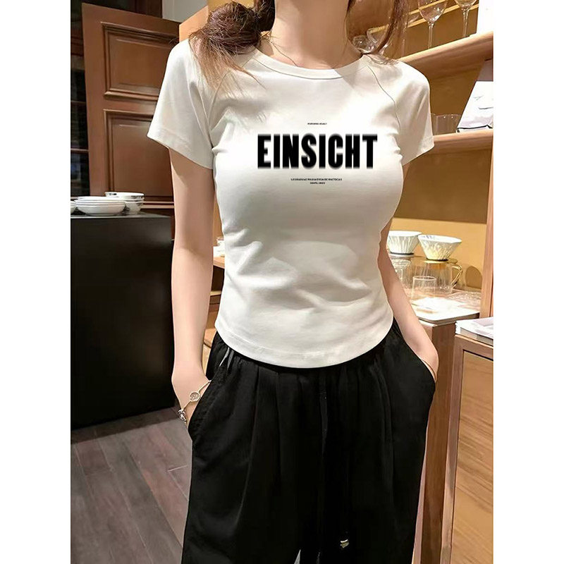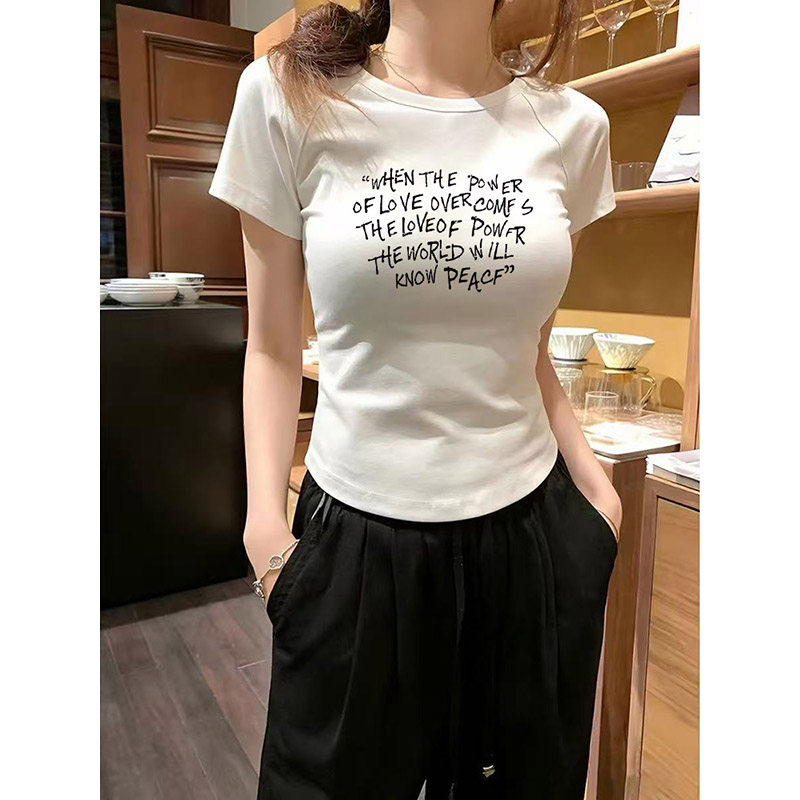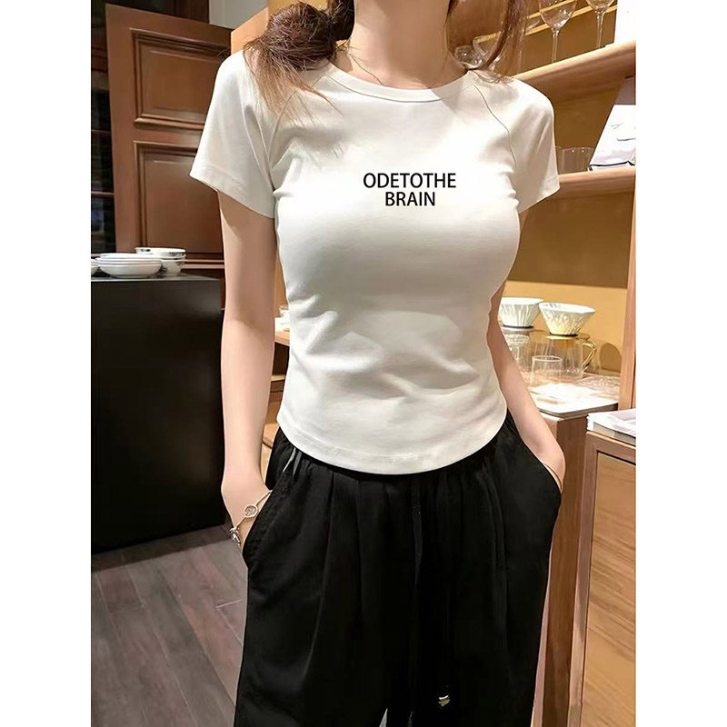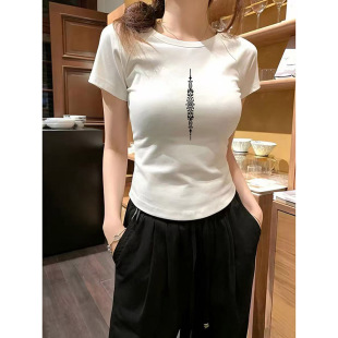 白色短袖 辣妹小个子短款 女纯棉T恤圆领修身 时尚 上衣 显瘦半袖 美式