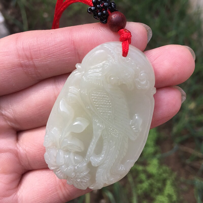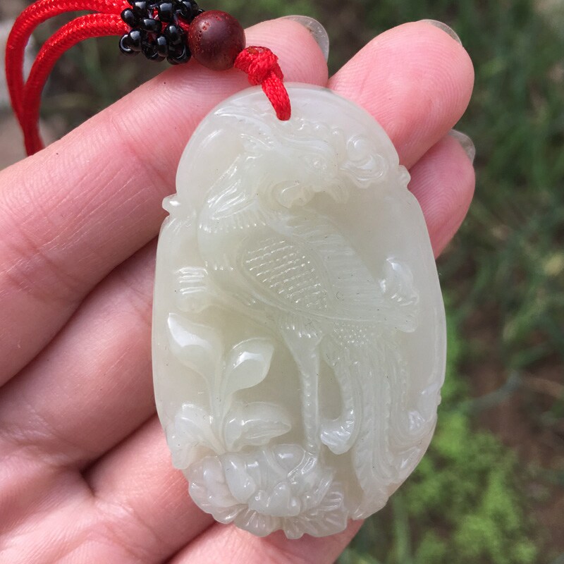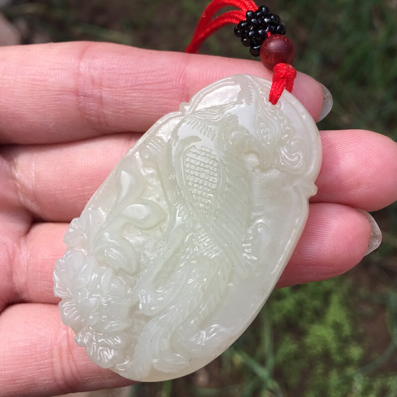 天然新疆和田玉青白玉凤项链女款 玉石吊坠凤阳牡丹玉挂件朱雀凤凰