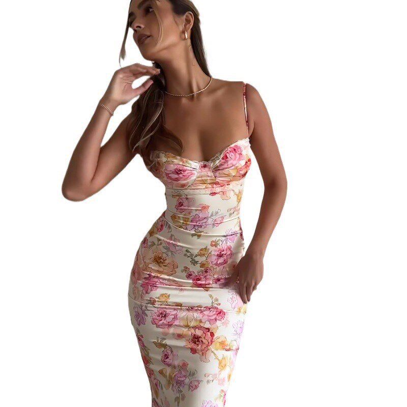 Printed Fashionable Sexy Backless Dress Summer Strappy 2025