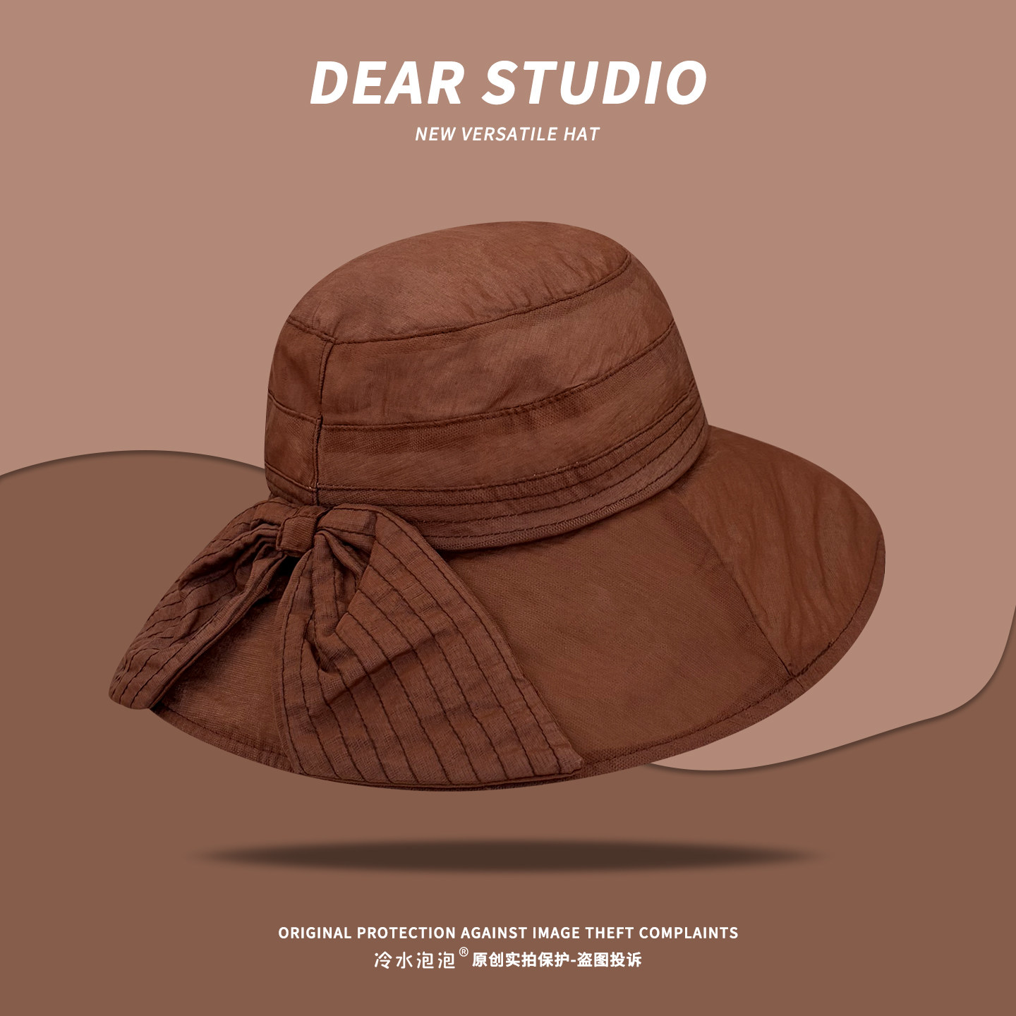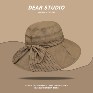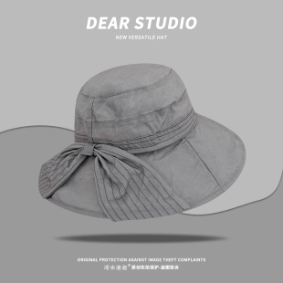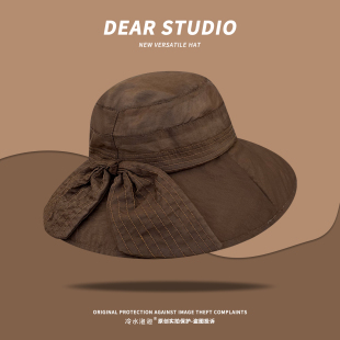 韩版 蝴蝶结双纱圆顶渔夫帽女夏素颜百搭遮阳透气防晒盆帽 气质时尚