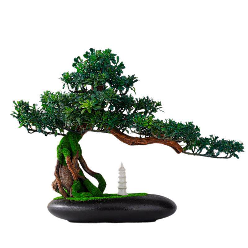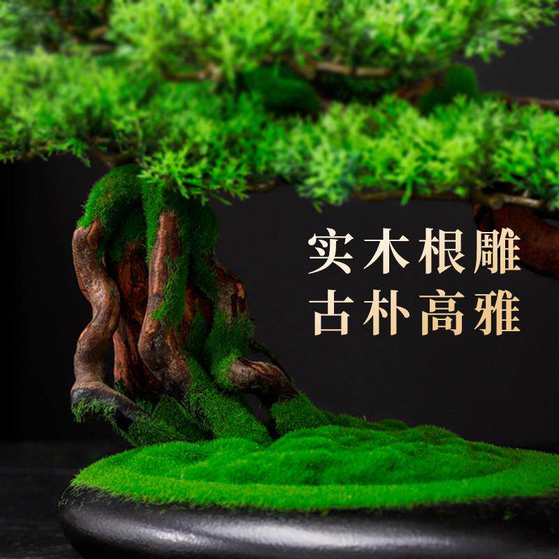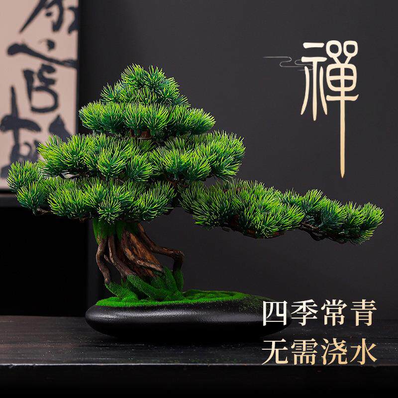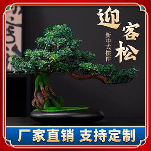 仿栽真迎松1绿植盆新中式 客饰品摆 公司酒店大堂玄茶会关所桌面装