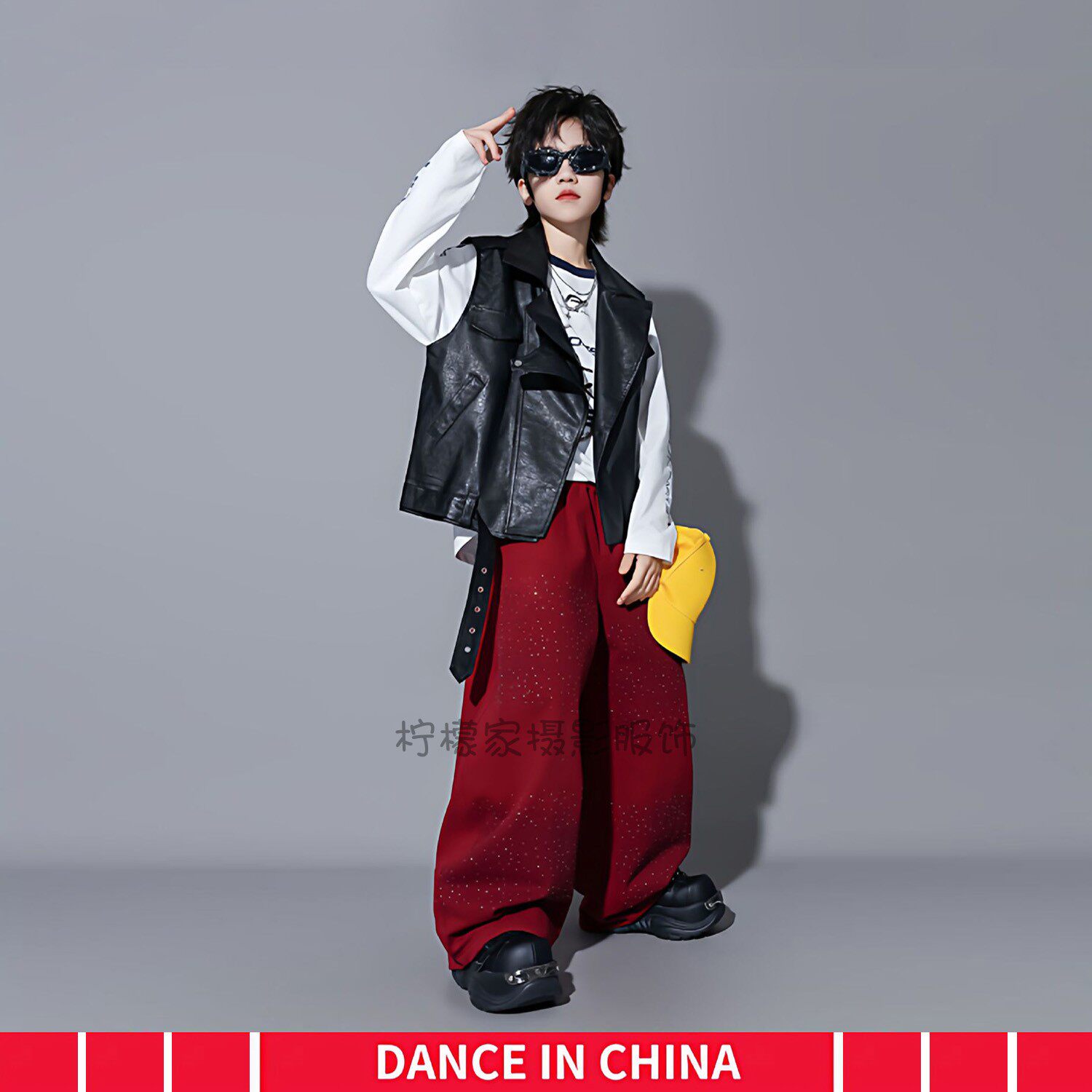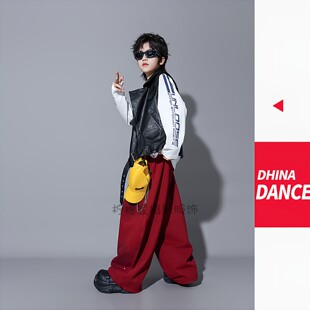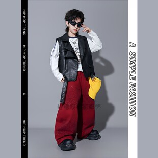 儿童摄影大童潮牌时尚 黑色皮衣马甲三件套男童模卡潮拍走秀套装
