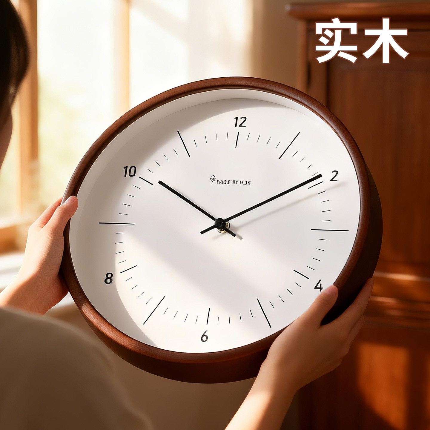 超静音免打孔挂钟实木家用客厅2026新款 时钟表 卧室挂表石英挂墙式