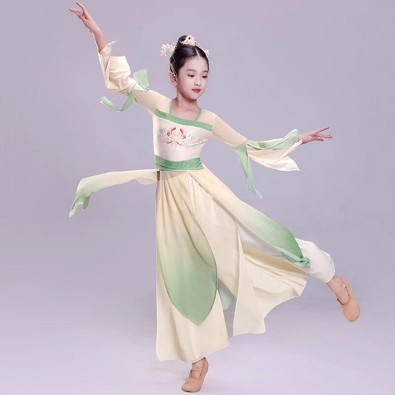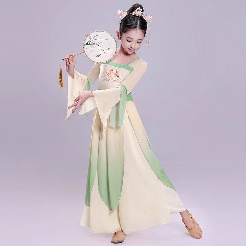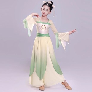 儿童古典舞蹈服纱衣长裙女童中国风汉服飘逸民族扇子舞身韵演出服