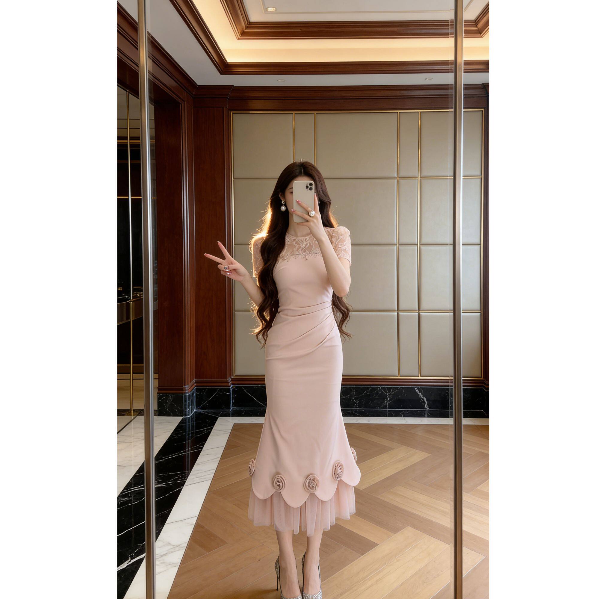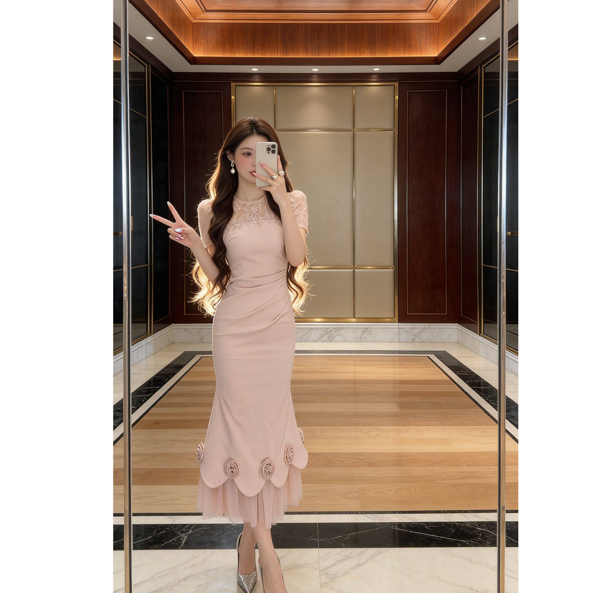 15660轻奢私服连衣裙气质夏季 宴会立体花朵鱼尾裙 设计感