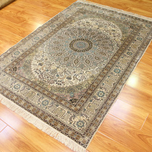 毯译 高道数81个结每平方厘米薄软老手工真丝波斯地毯 4x6英尺