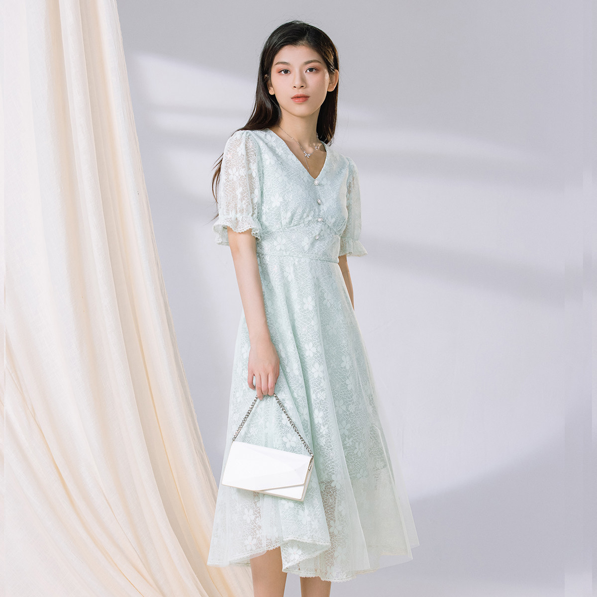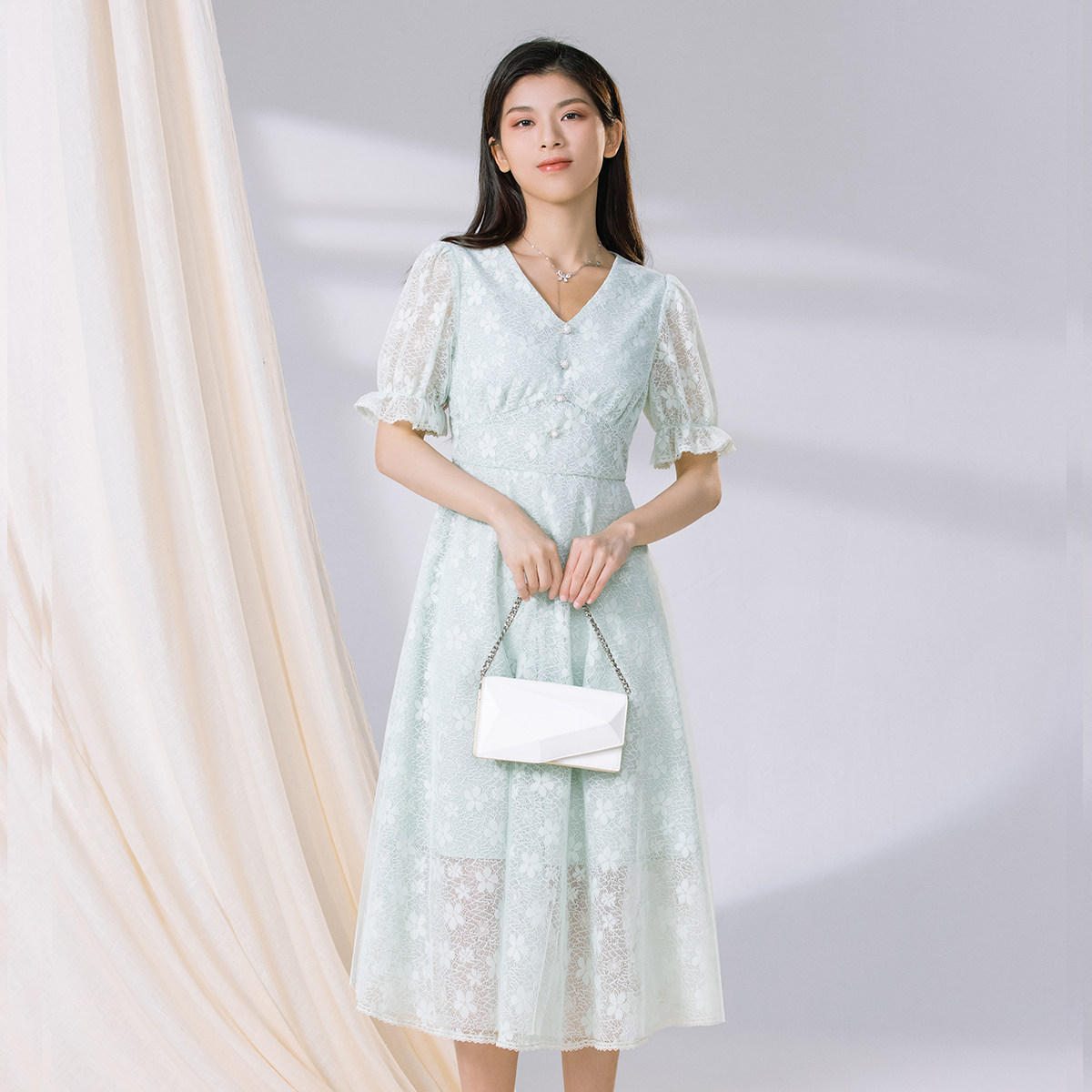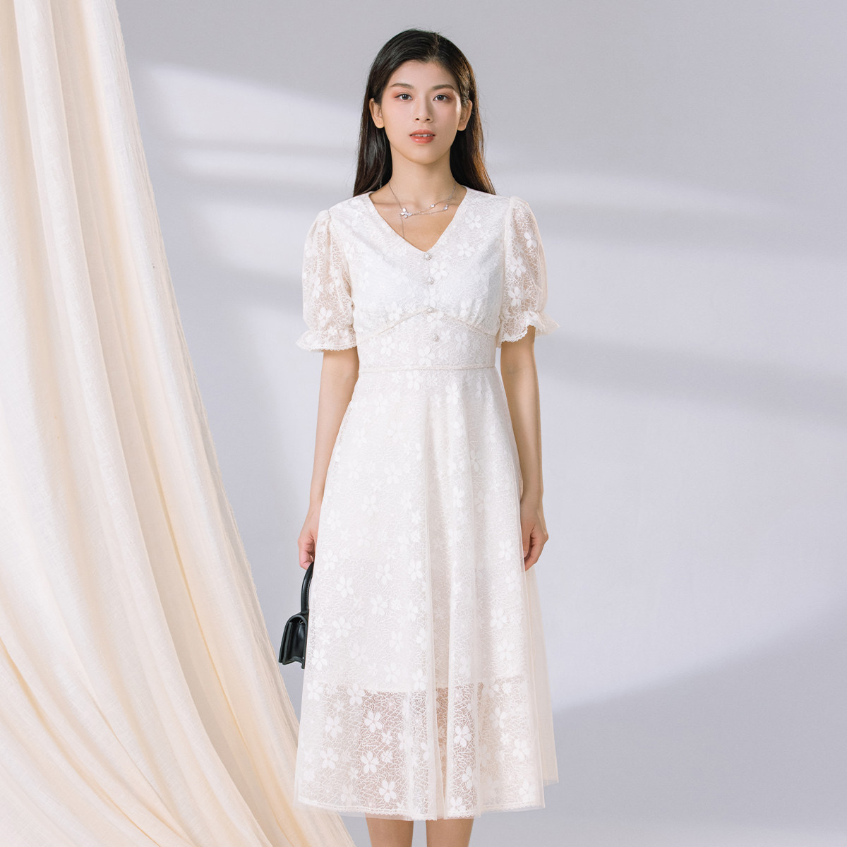 阿依莲a.yilian 优雅蕾丝连衣裙