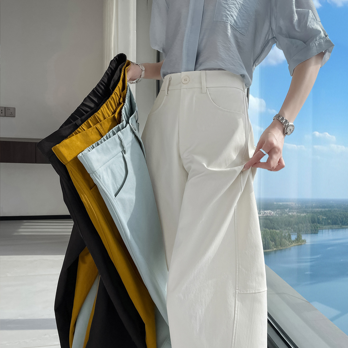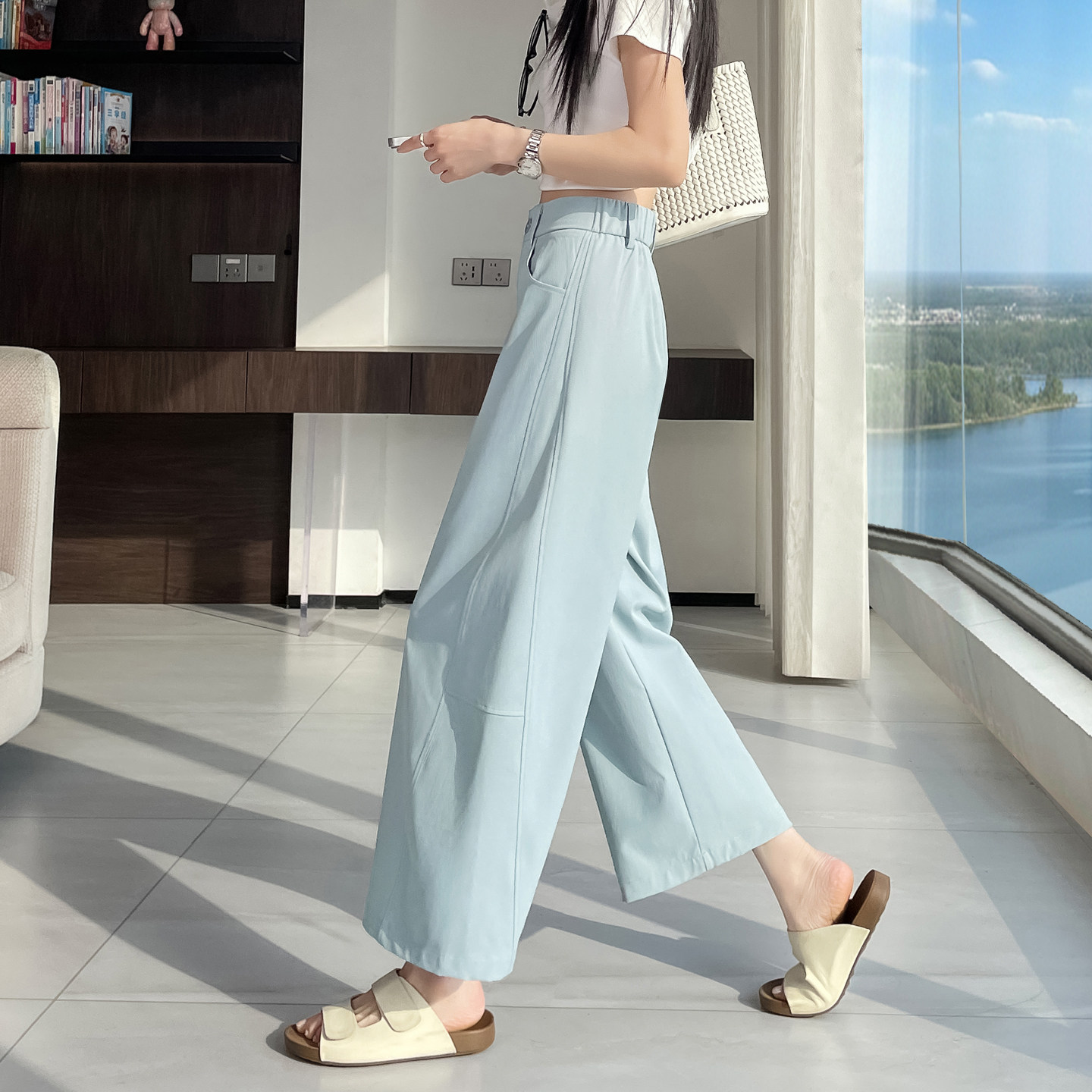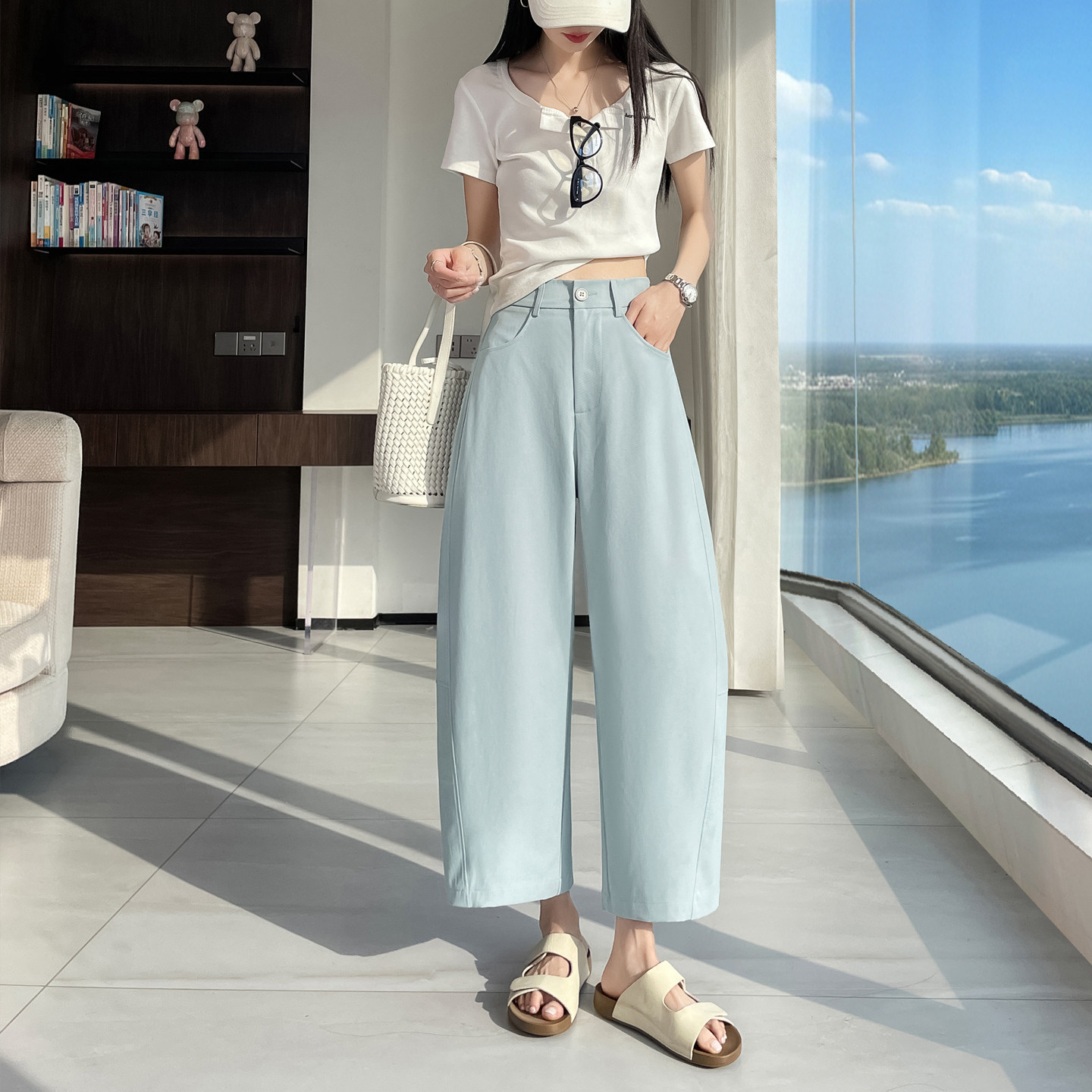 高腰显瘦直筒气球裤 春夏薄款 女宽松休闲裤 小个子云柔棉弯刀阔腿裤