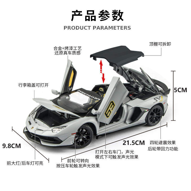 新款 建元 盒装 24兰博SVJ63超跑合金带声光汽车模型收藏 散装