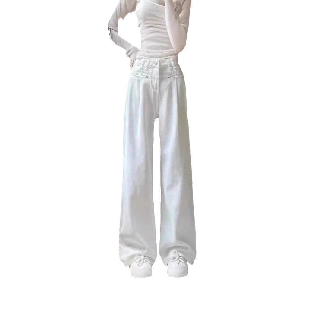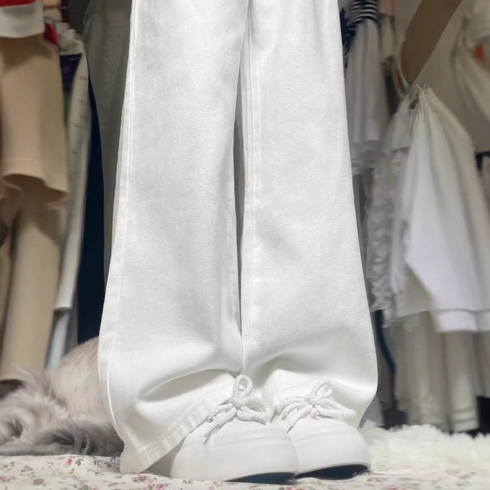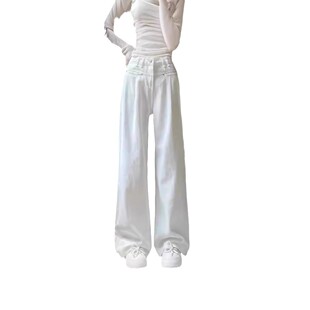 宽松高腰小个子九分阔腿裤 女夏薄款 显瘦窄版 超薄四面弹直筒牛仔裤
