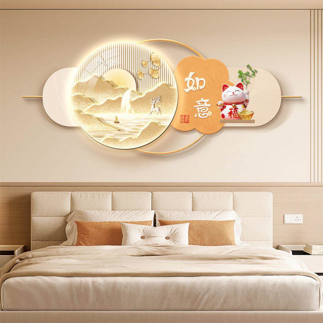 画轻奢高级感2025新款 画LED灯壁画 寓意好房间背 饰画 卧室床头装