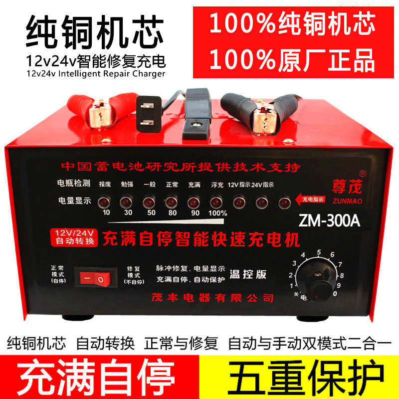300A纯铜汽车电瓶充电器大功率叉车货车通用智能充电机6v12v24v
