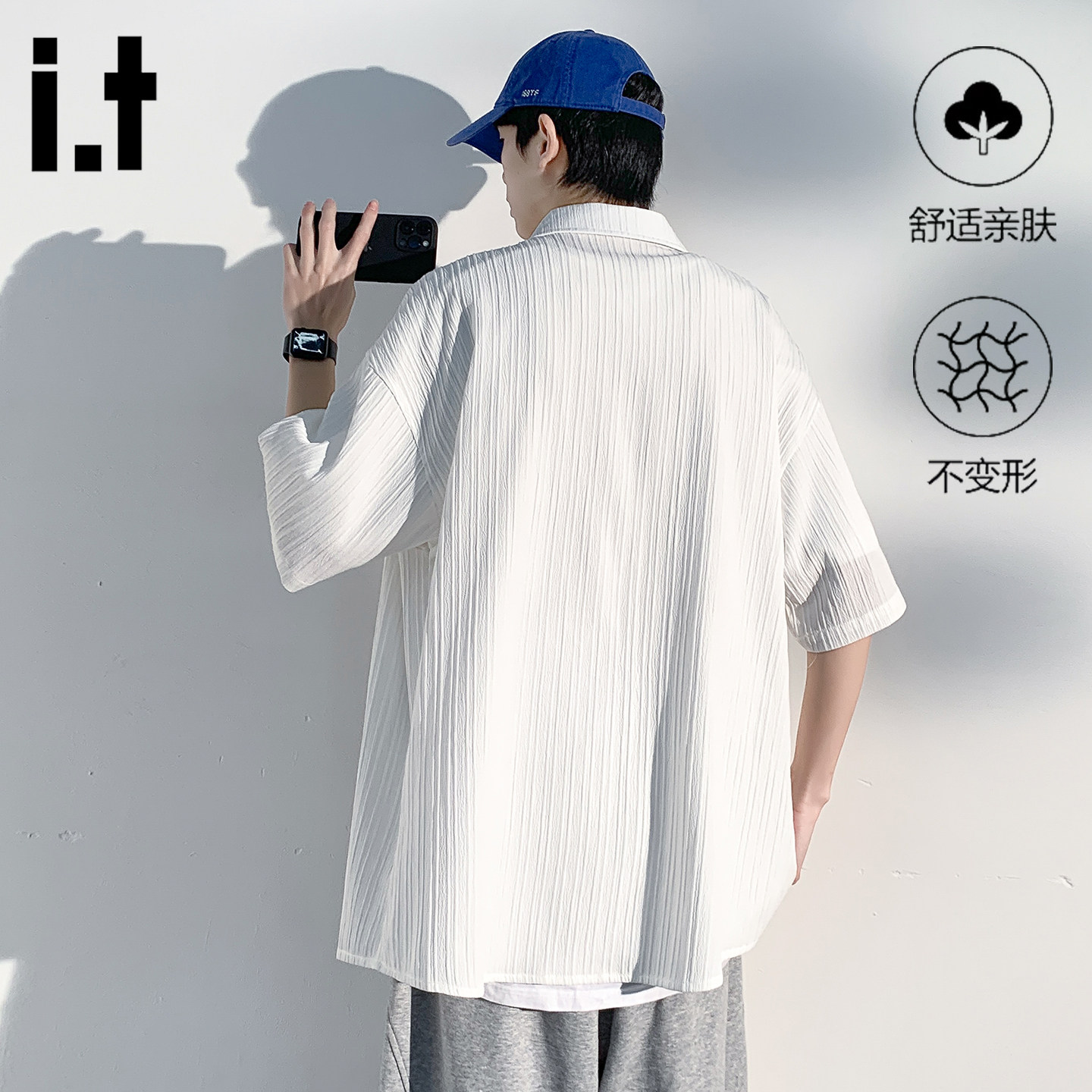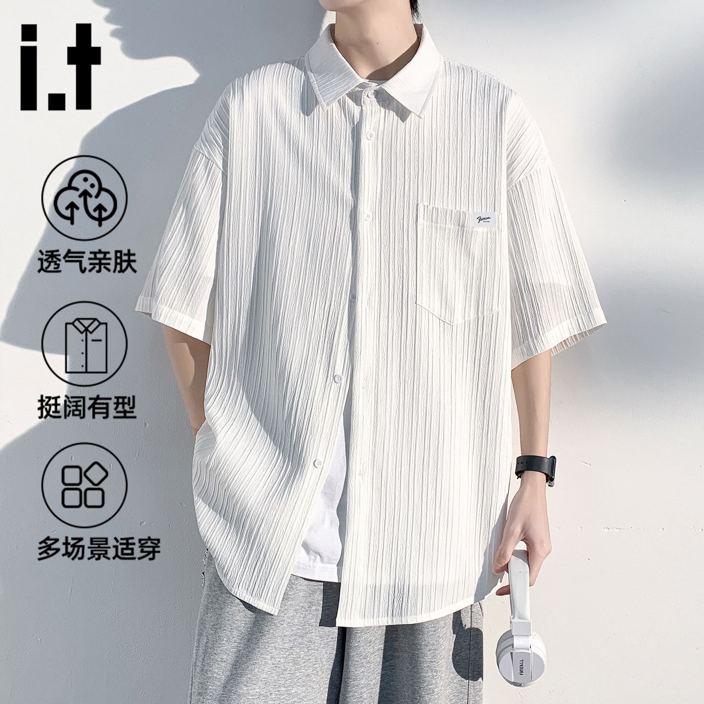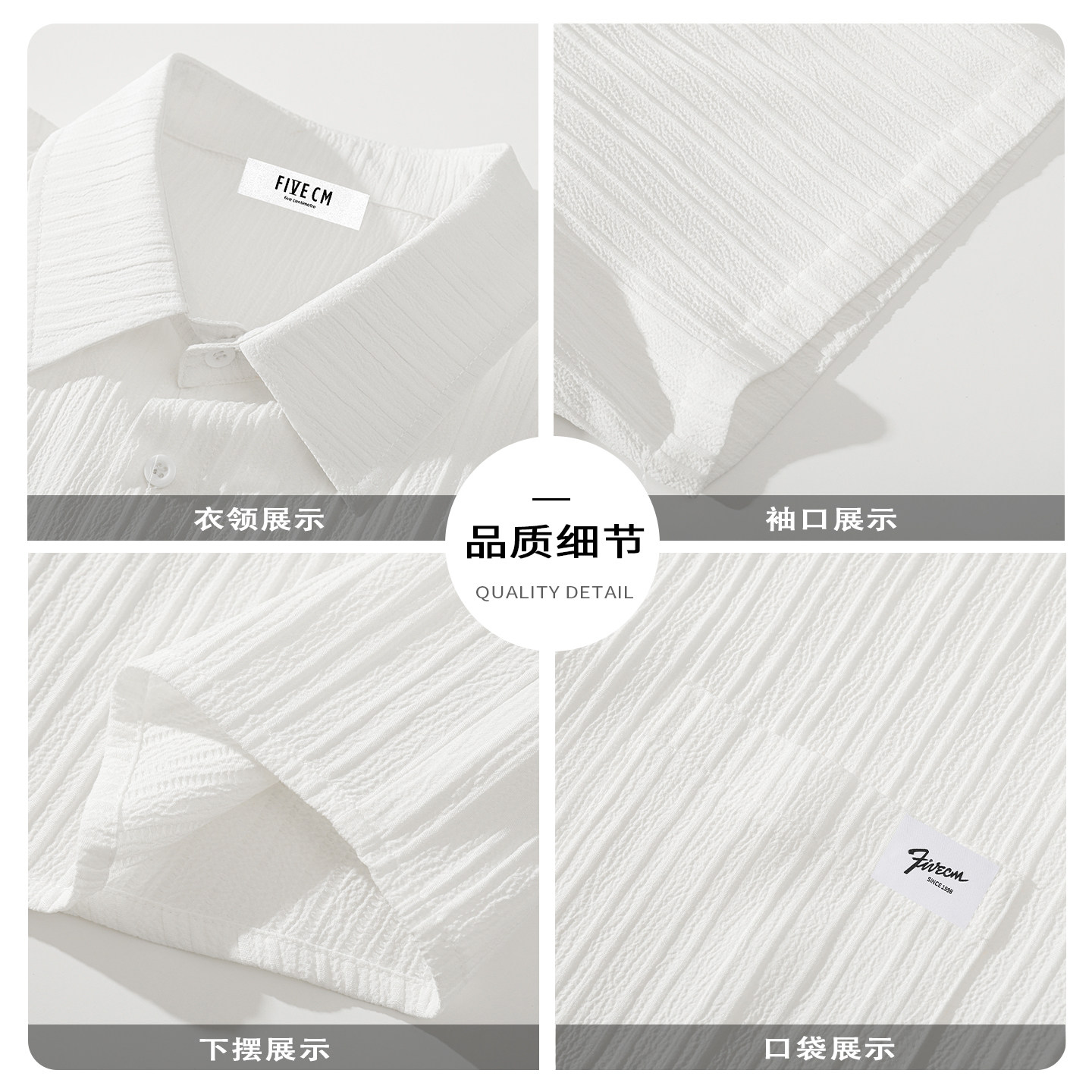 5cm 男款 FIVECM白色冰丝肌理感男士 t恤2026夏季 宽松衬衣 短袖