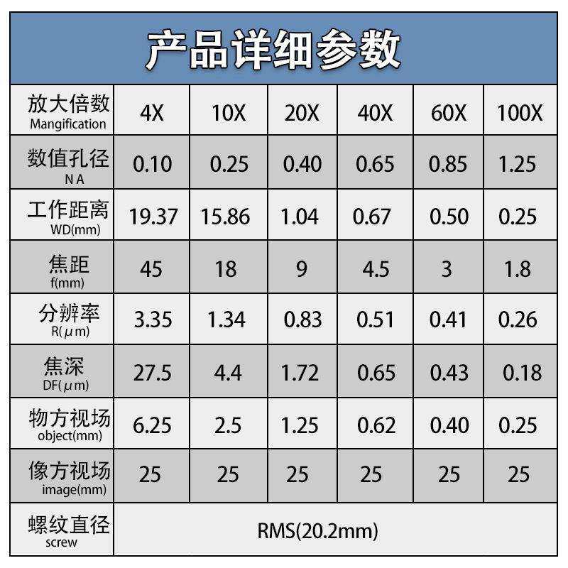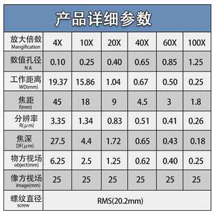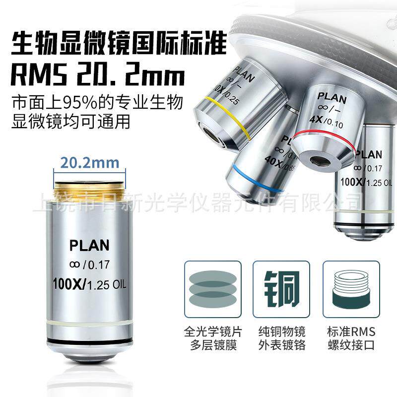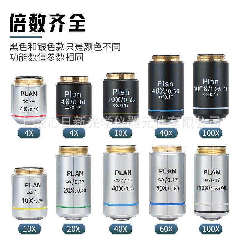 195型显微镜物镜4X10X20X40X60X100X平场无穷远消色差专业物镜