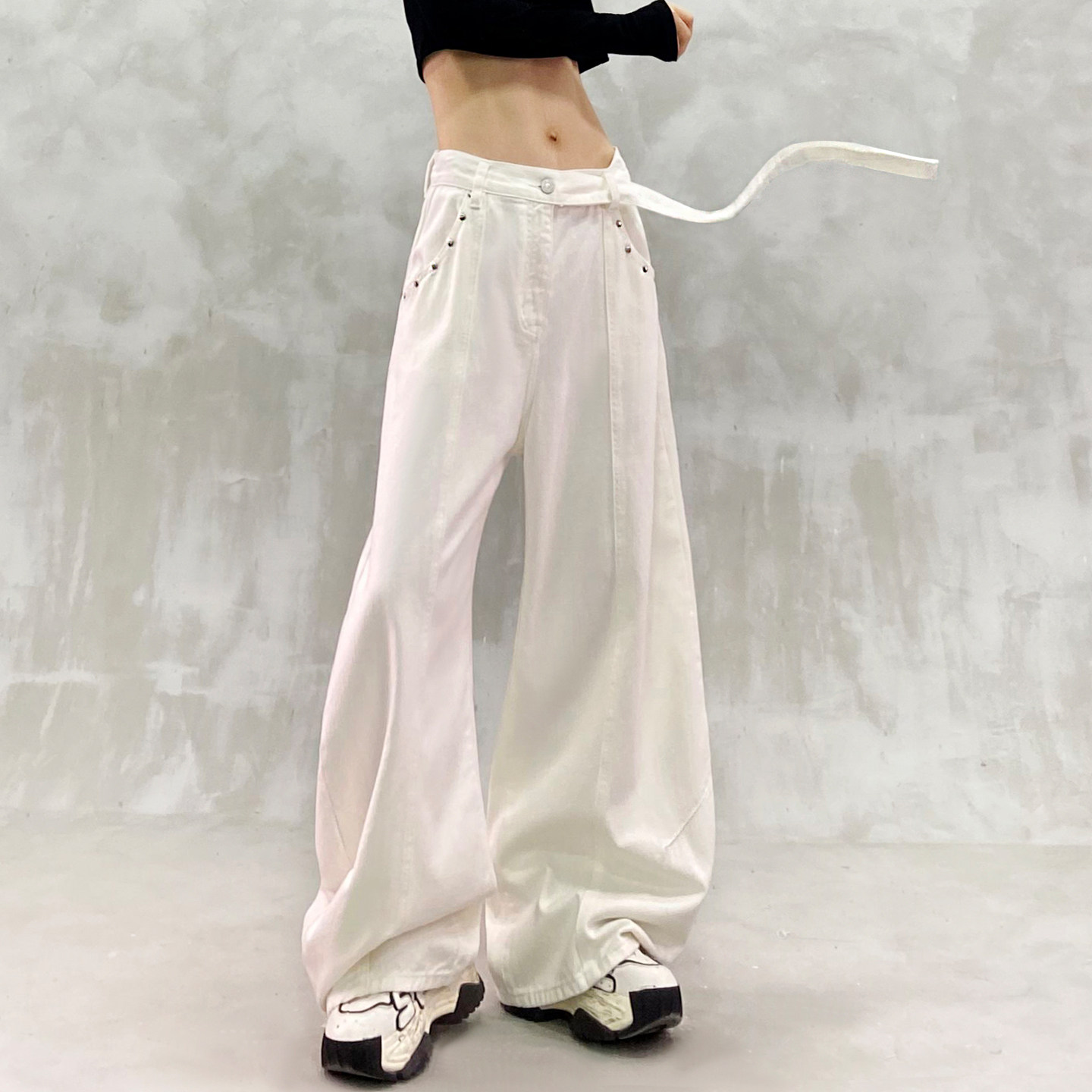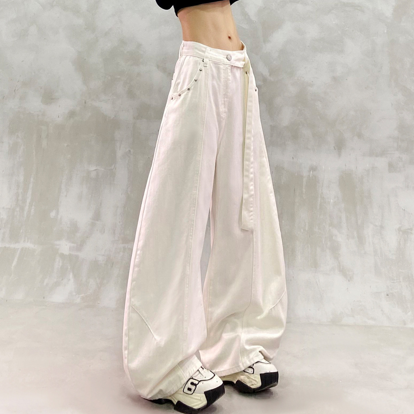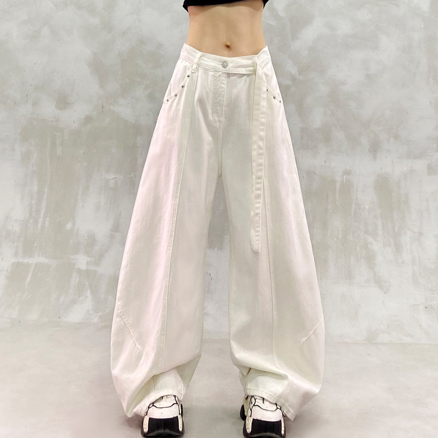 高腰宽松显瘦百搭镰刀香蕉裤 口袋设计水洗白色弯刀牛仔裤 女春新款