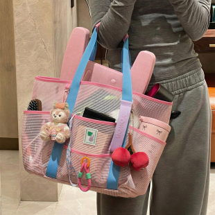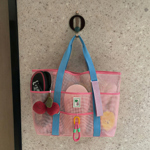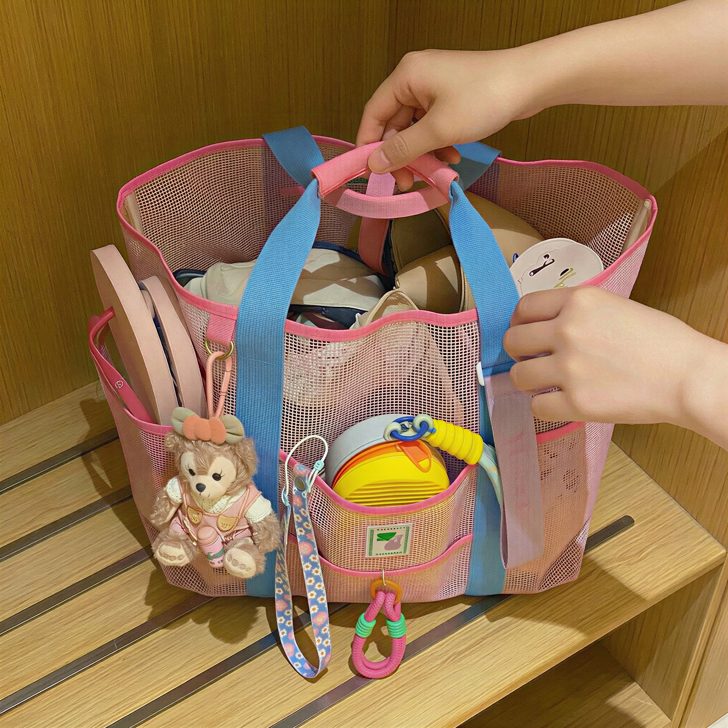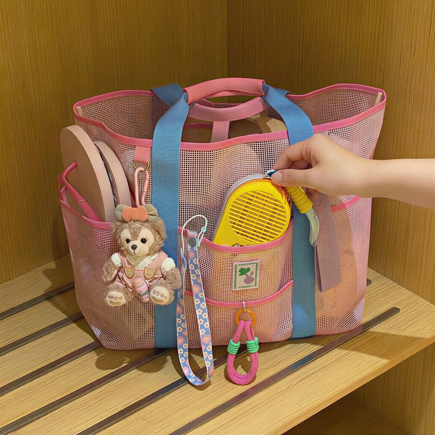 网纱收纳袋便携手提妈咪包网兜健身游泳包大号旅行海边装 备沙滩包