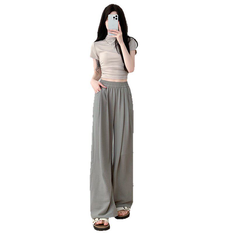 防蚊防晒窄版 薄款 直筒棉绸外穿小个子凉凉山本 女夏季 冰丝阔腿裤