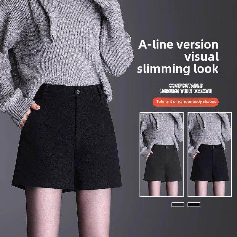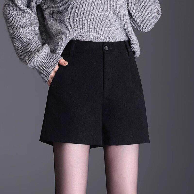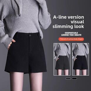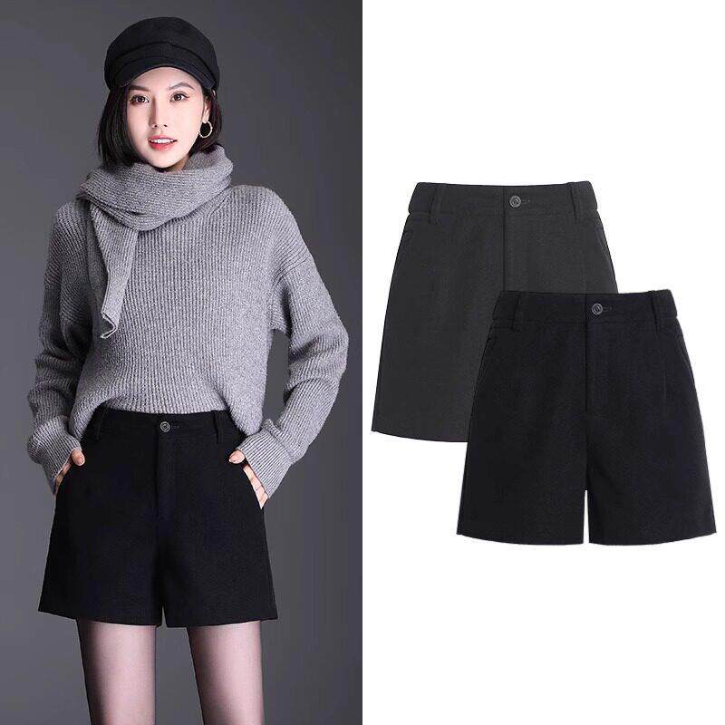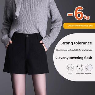 NAIVE毛呢短裤 靴裤 女秋冬新款 胖mm黑色西装 子 高腰显瘦大码 ROUJE