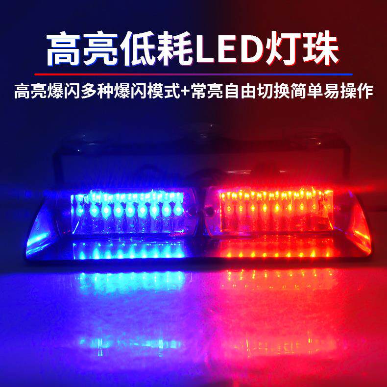 汽车红蓝爆闪灯高亮吸盘灯铲子灯开道警示灯安防车载led报警灯12V