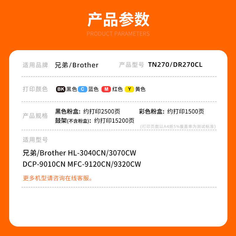 DCP9010CN硒鼓TN270 9320 适用兄弟HL3040cn粉盒3070cw mfc9120cn