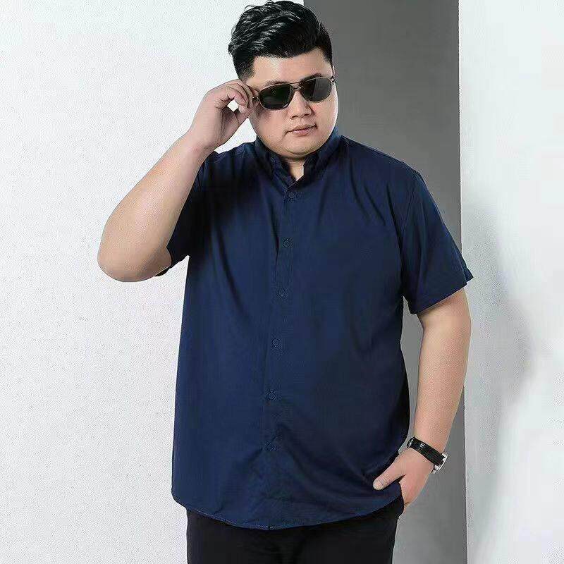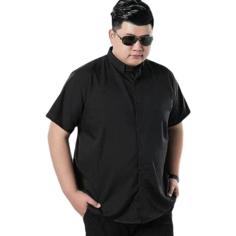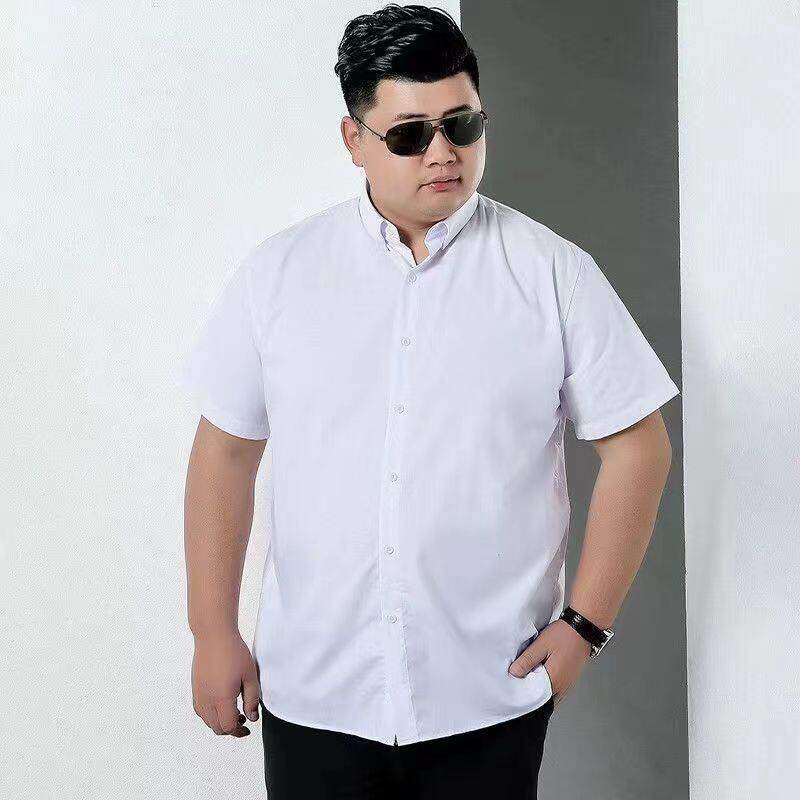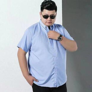 特大号纯色衬衣爸爸装 加肥加大码 男商务正装 衬衫 休闲宽松上衣 短袖