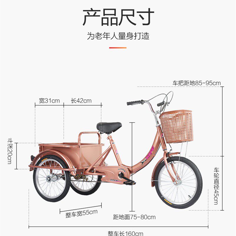 老人防摔倒成人滑板车三轮车老年人2023新款 脚踩三轮车接送孩子双