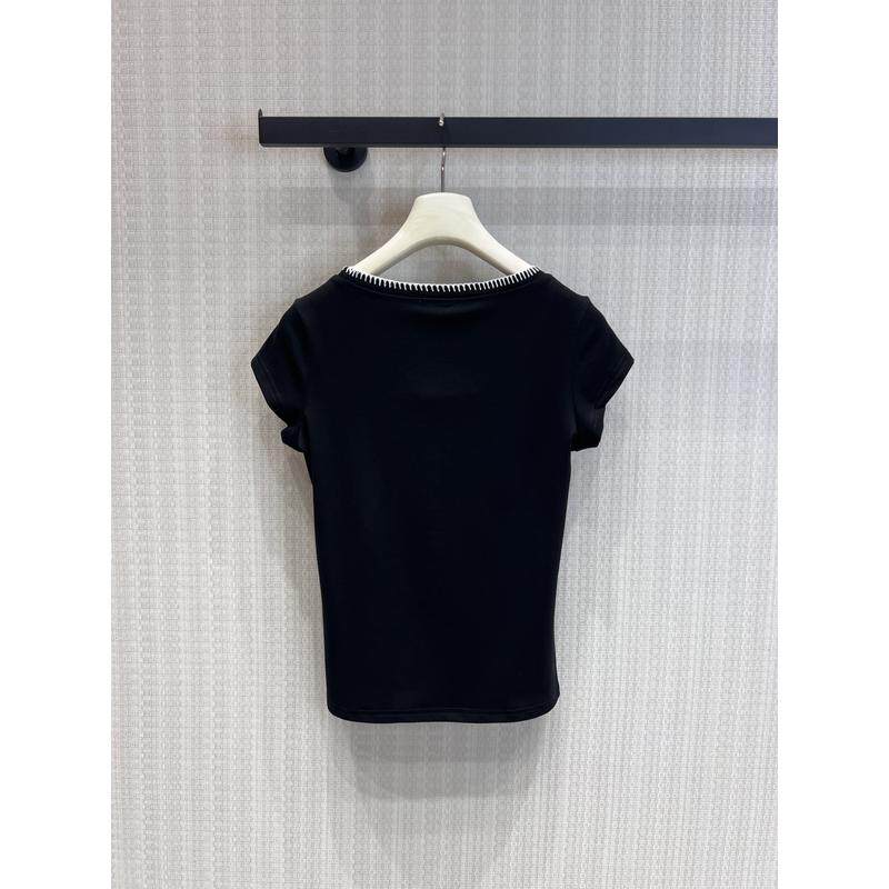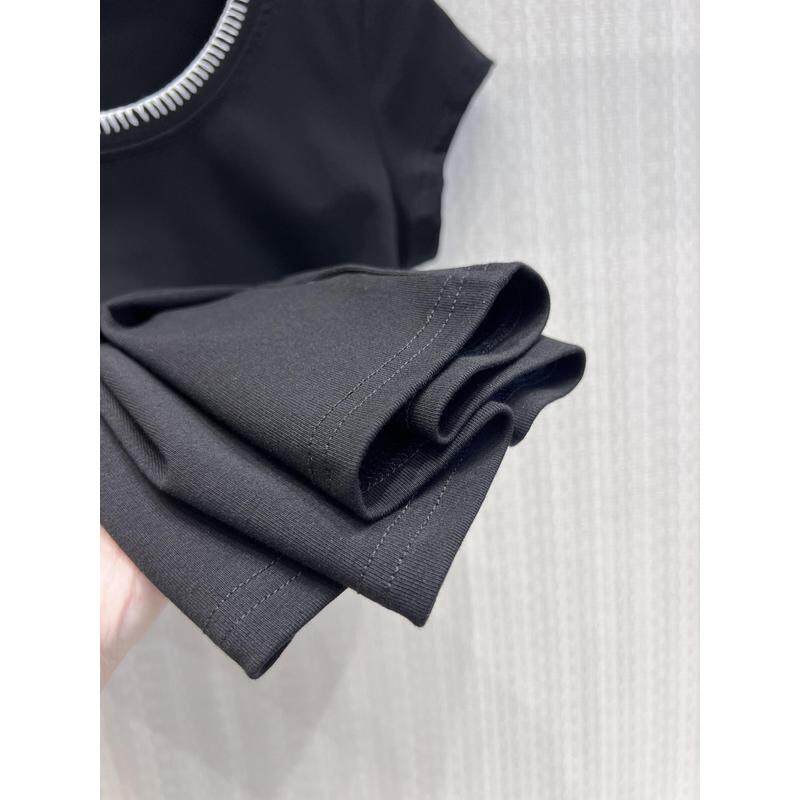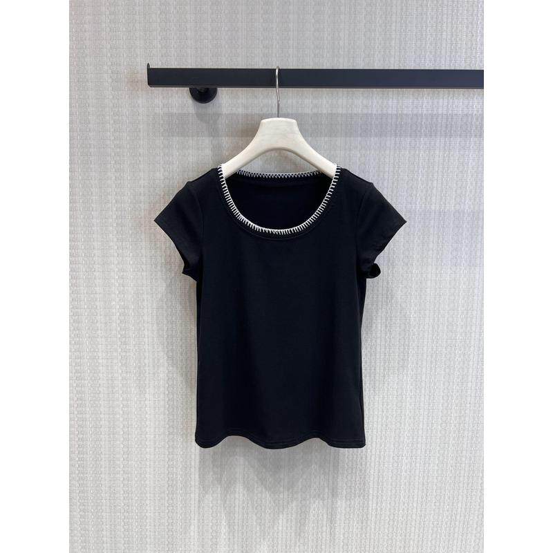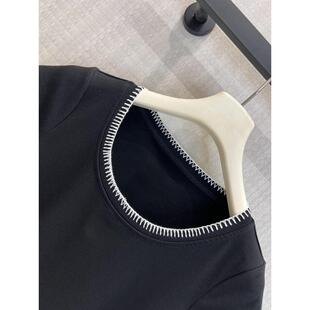 显瘦百搭打底衫 休闲风撞色边短袖 T恤女黑色修身