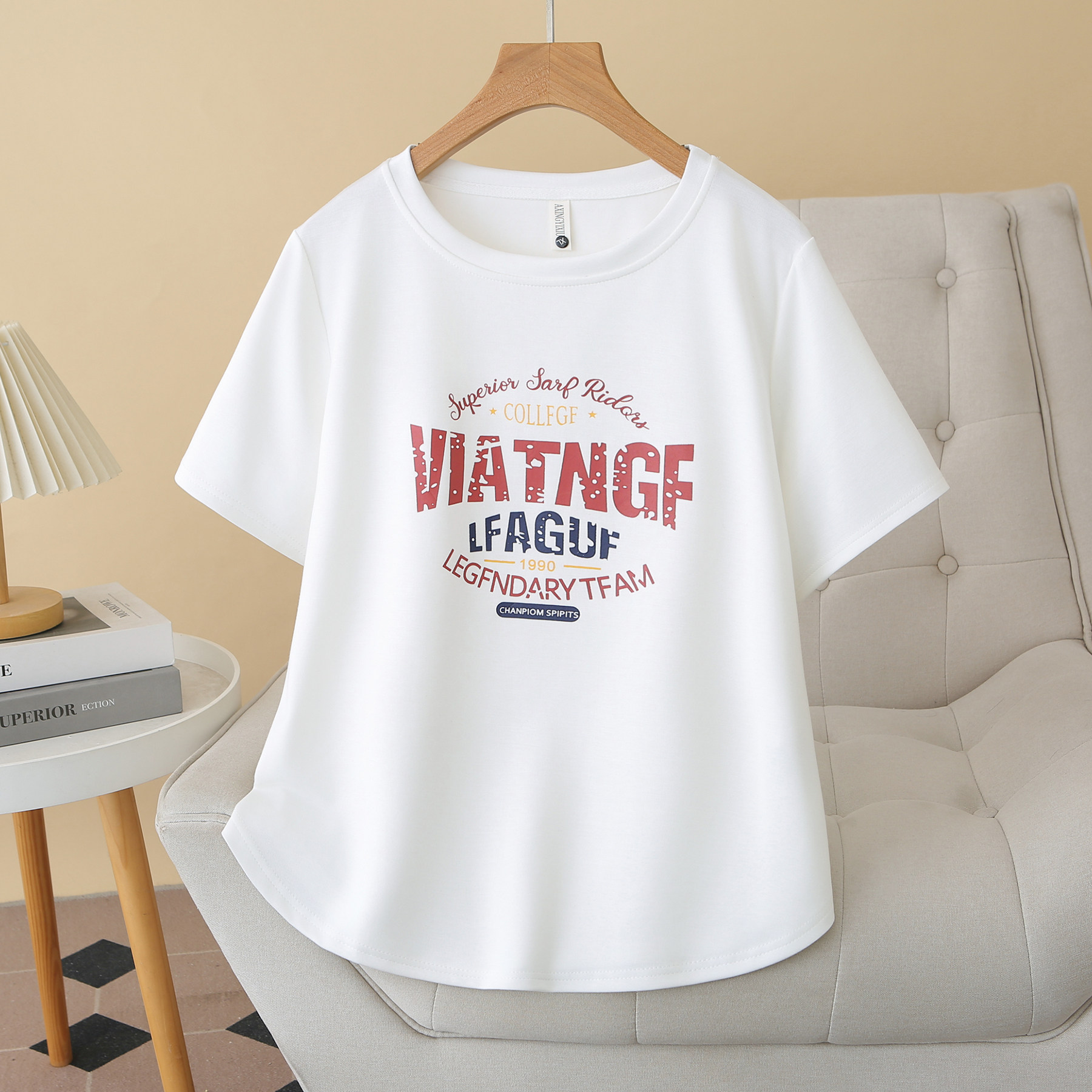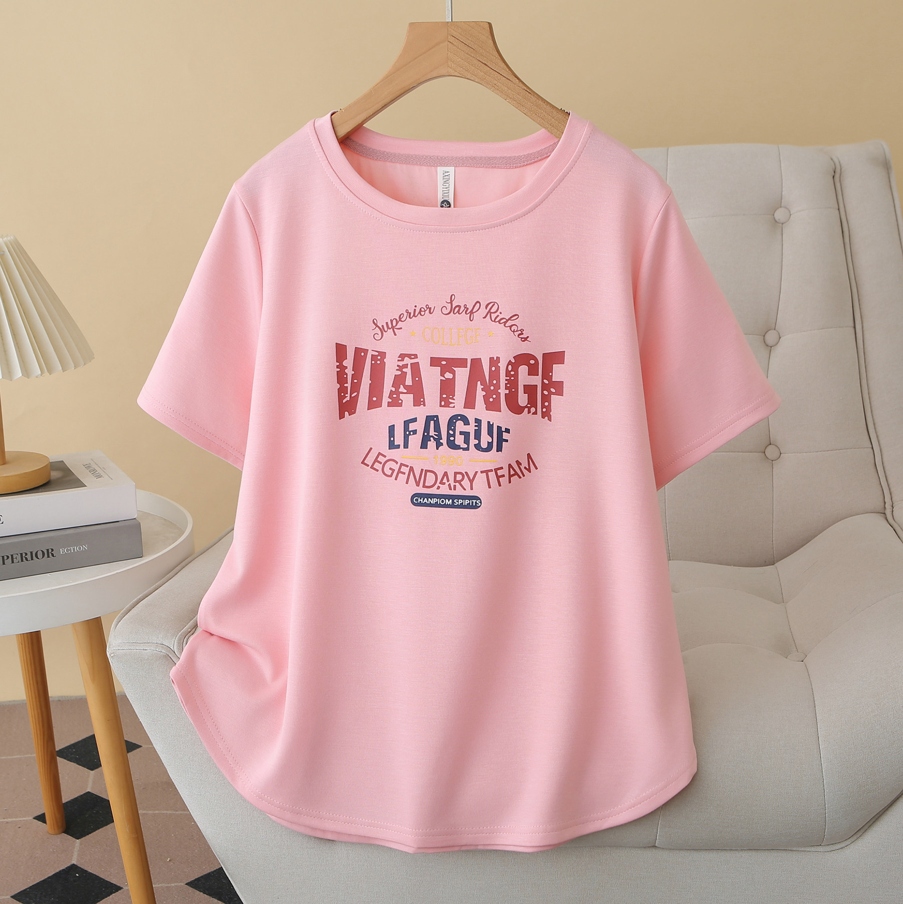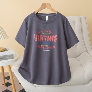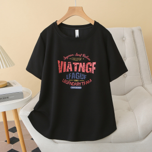 新款 休闲印花百搭圆领短袖 上衣200斤胖MM大码 时尚 T恤 女装 2026夏季