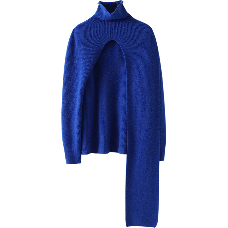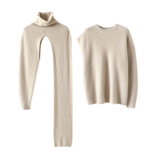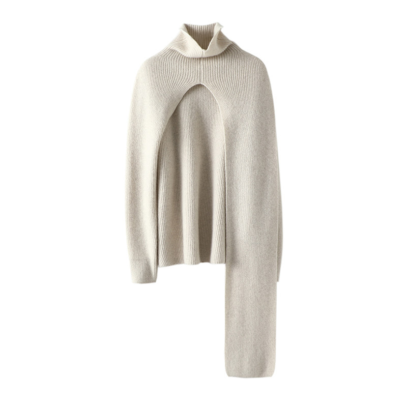女加厚纯羊绒毛衣斗篷披肩披风 两件套高领山羊绒衫 步步风情 美