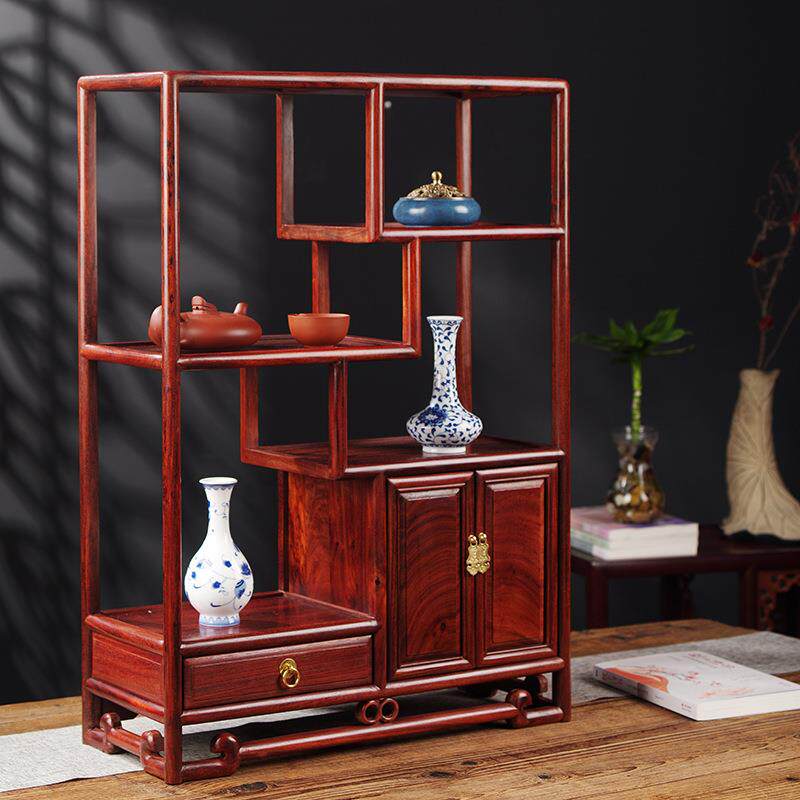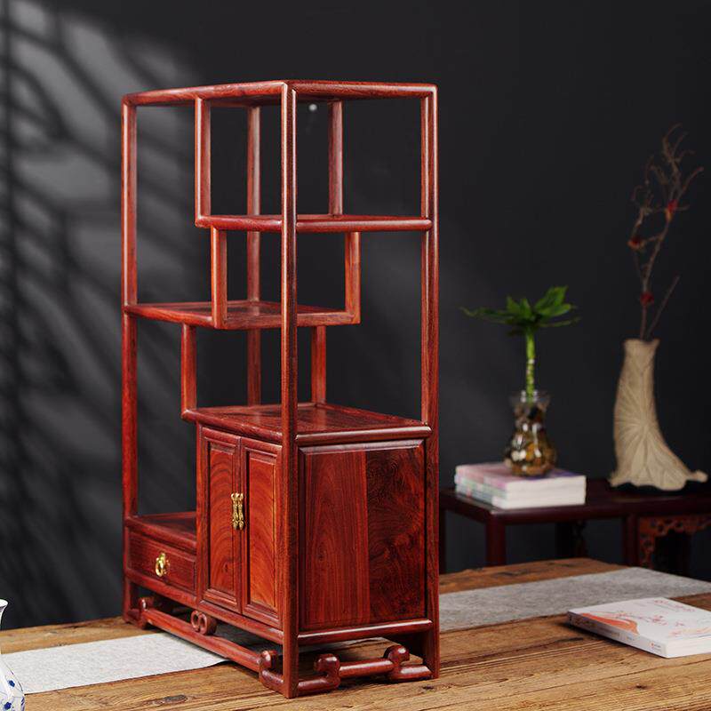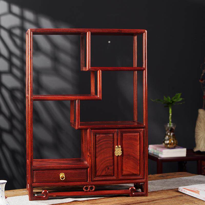 红木家具赞比亚血檀博古架小展示架新中式 实木多宝阁紫砂壶置物架