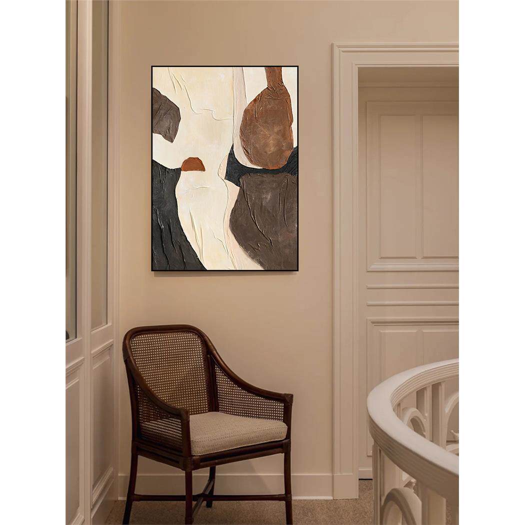 极简侘寂风客厅装 挂画大气高级感画 饰画抽象手绘油画民宿酒店软装