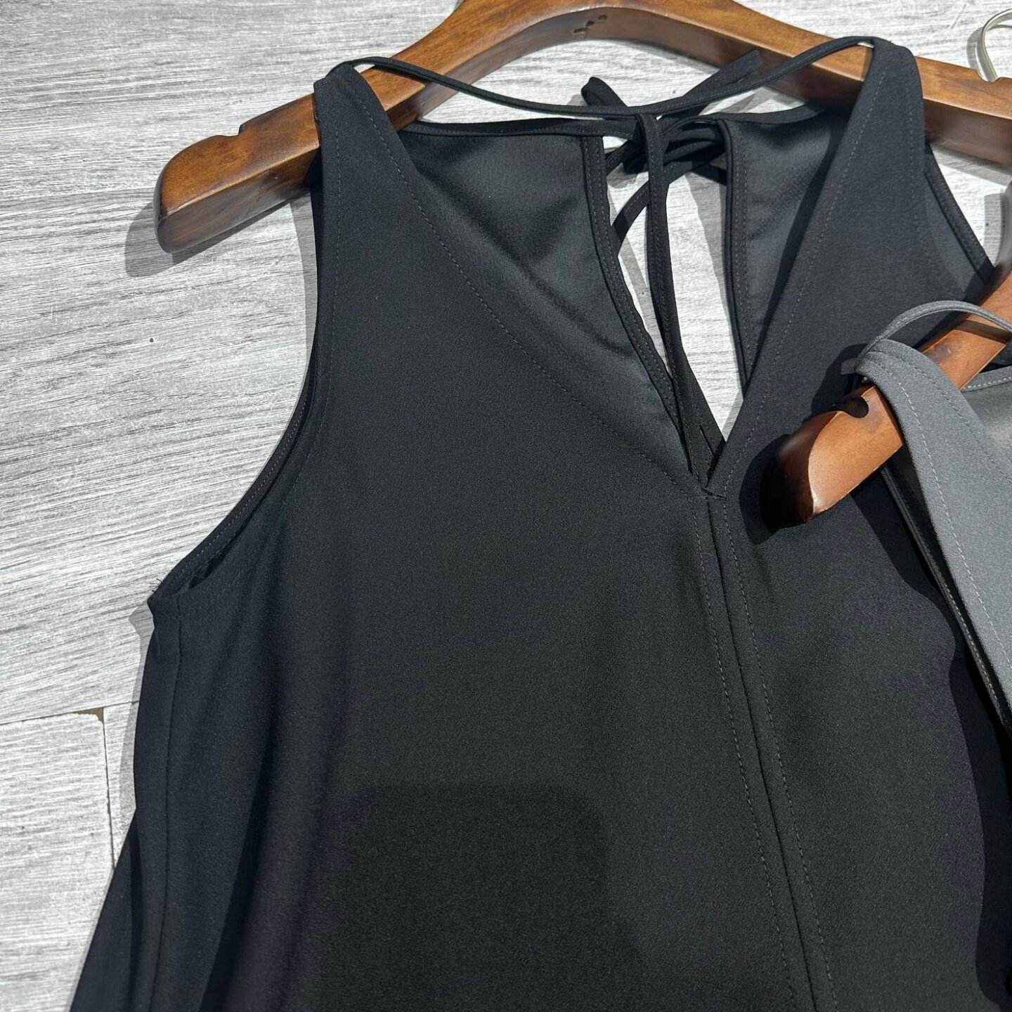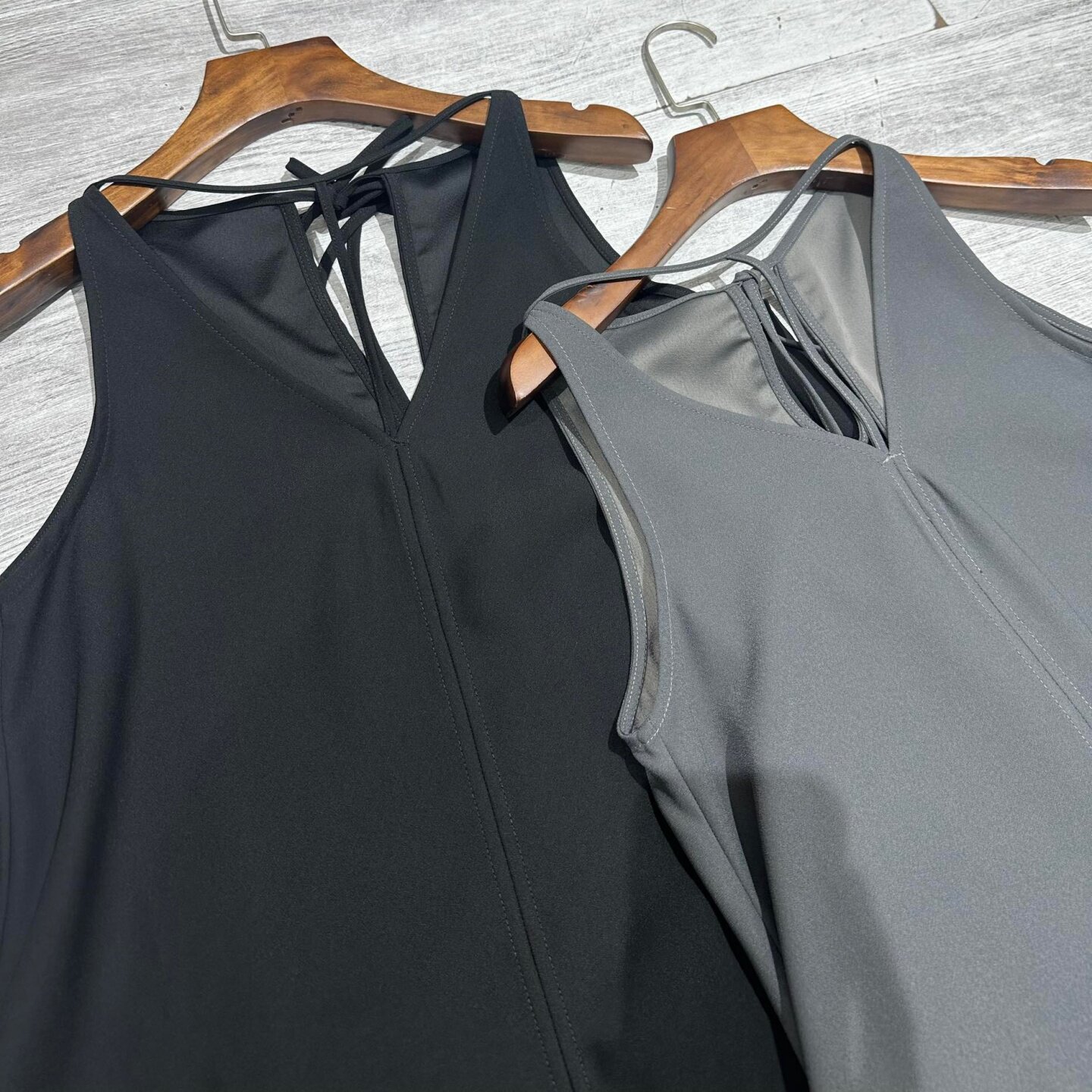北欧TOT夏季 铅灰色黑色T字深V领系带绉背缎连衣裙女 新款