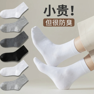女袜子 休闲运动袜女涤棉月子袜新品 中筒袜薄款 袜子男纯色透气四季