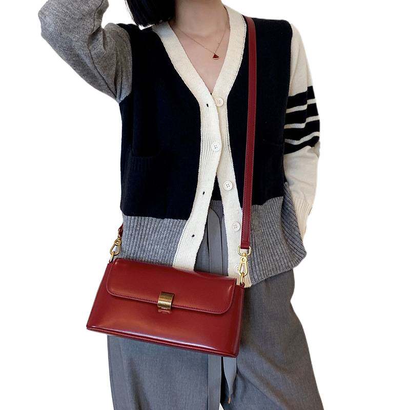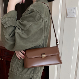 日本ぜいた真皮手提包包女2024新款 复古腋下包法棍包中古单 潮时尚