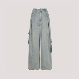 高腰垂感小个子宽松复古运动阔腿裤 女春秋2026新款 直筒牛仔裤 美式