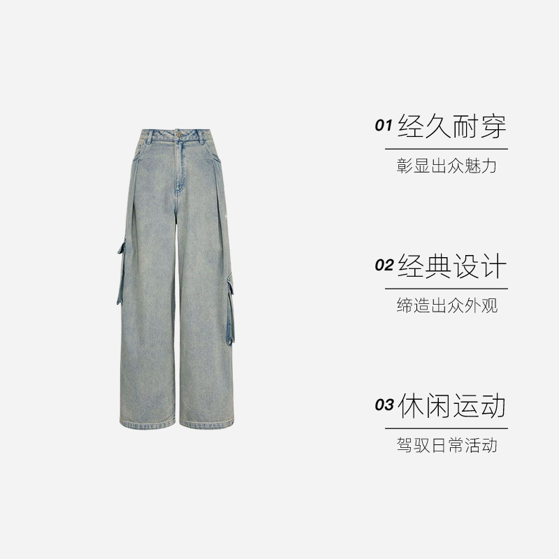 休闲街舞运动裤 SMILE 240g水洗蓝轻薄透气美式 伞兵牛仔裤 DDD