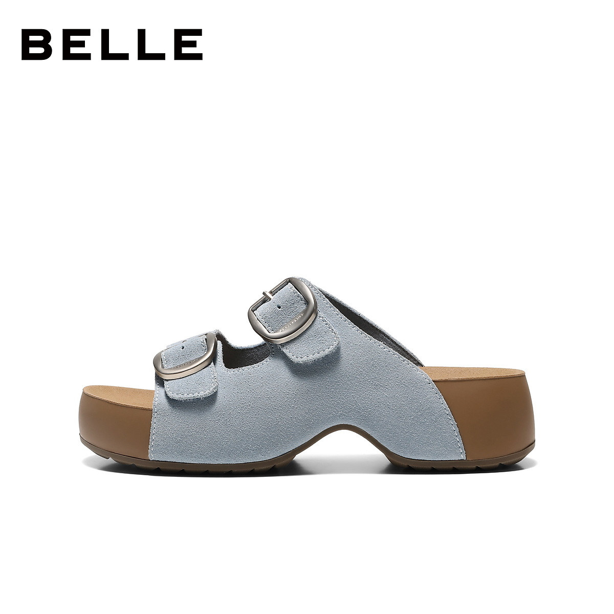 百丽复古皮带扣人鱼底吐司勃肯鞋 试用 女26夏增高休闲拖鞋 新品