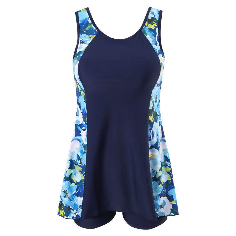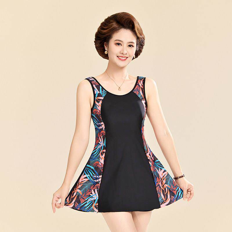 时0325r1 保守遮肚显瘦中老年大尺码 泳衣女中年妈妈款 女士连身裙式