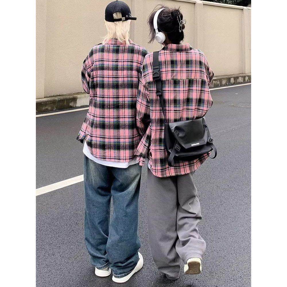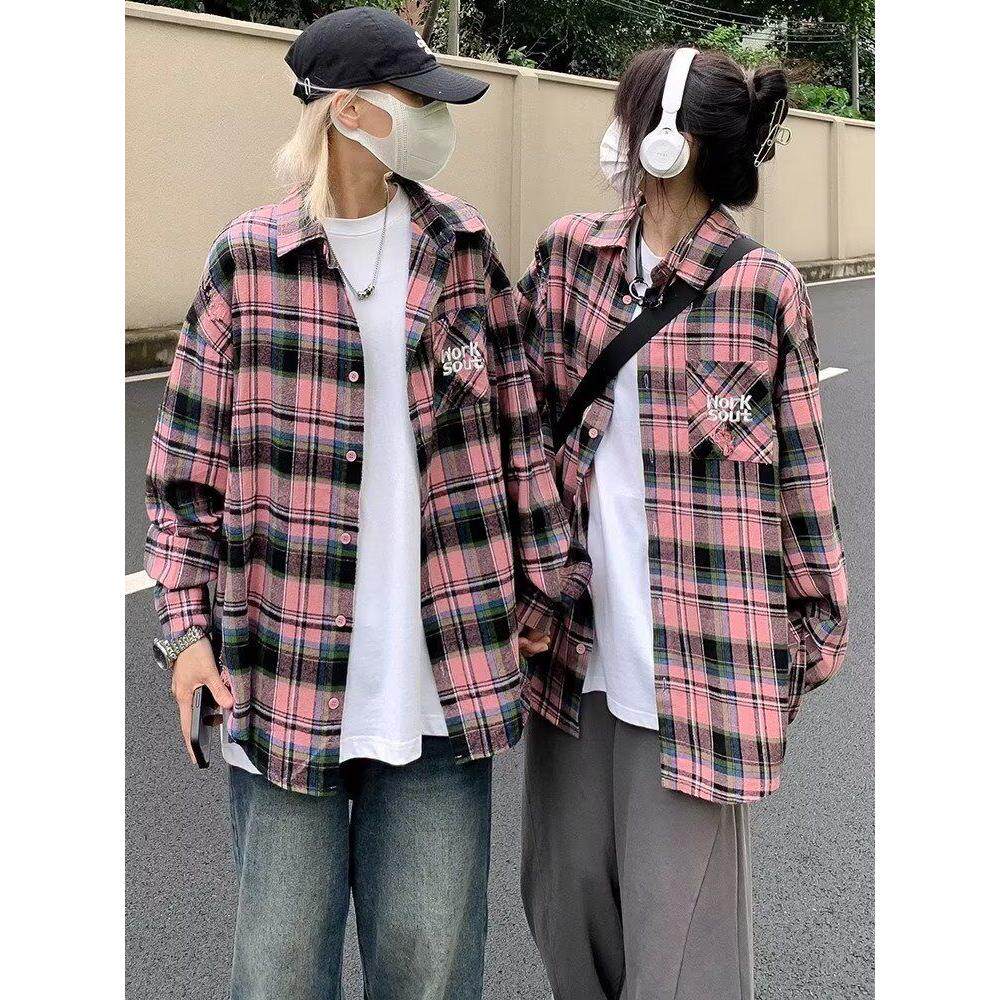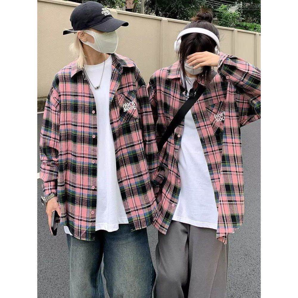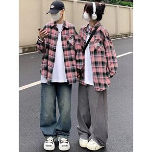 男女新款 衬衫 设计感小众宽松衬衣外套 复古甜酷格子长袖 美式