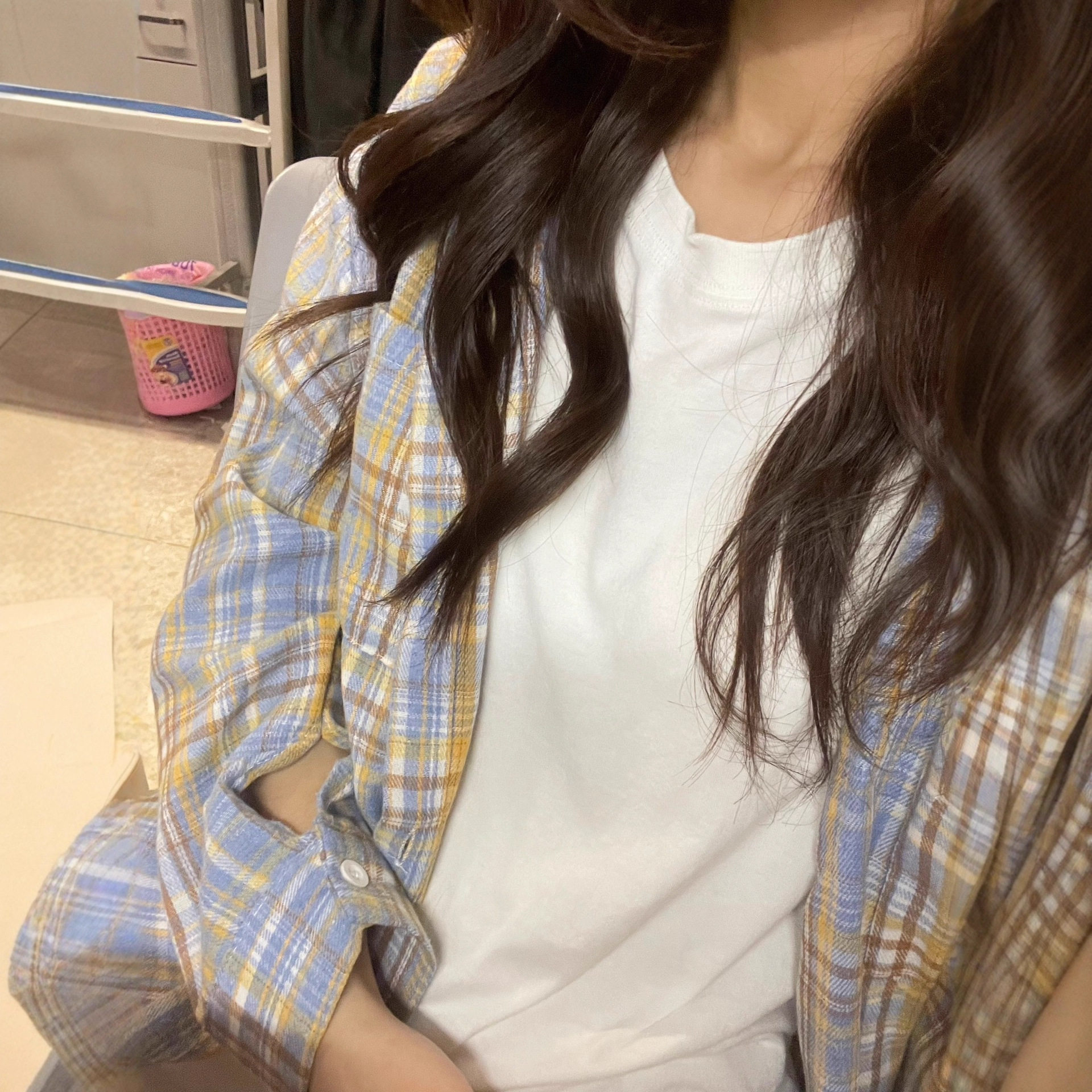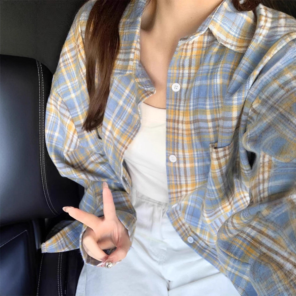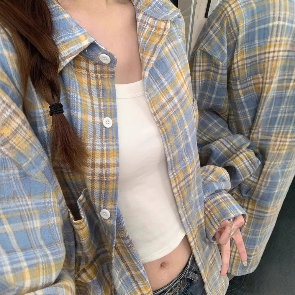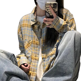 格子条纹百搭宽松显瘦休闲日常衬衣上衣外穿 衬衫 美式 小众设计长袖