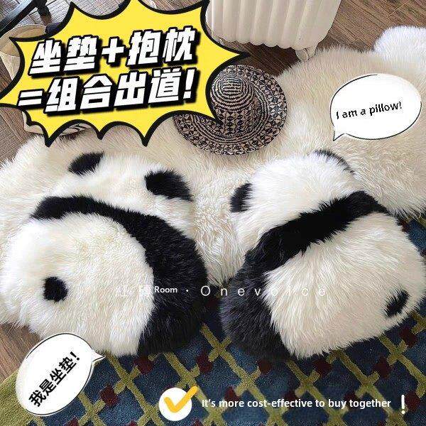 羊毛可爱熊猫飘窗坐垫皮毛一体沙发抱枕靠垫ins风女生家居装 饰品