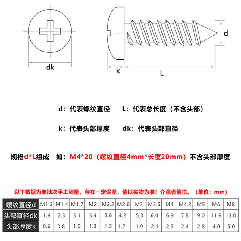 x6x10x20x30x50 304不锈钢黑色PA十字圆头自攻螺丝螺钉盘头