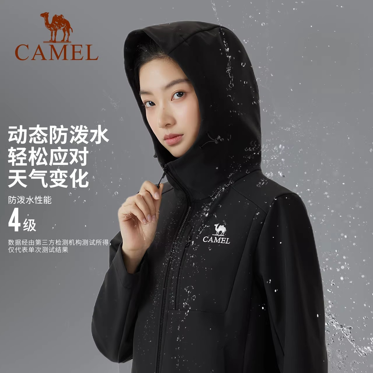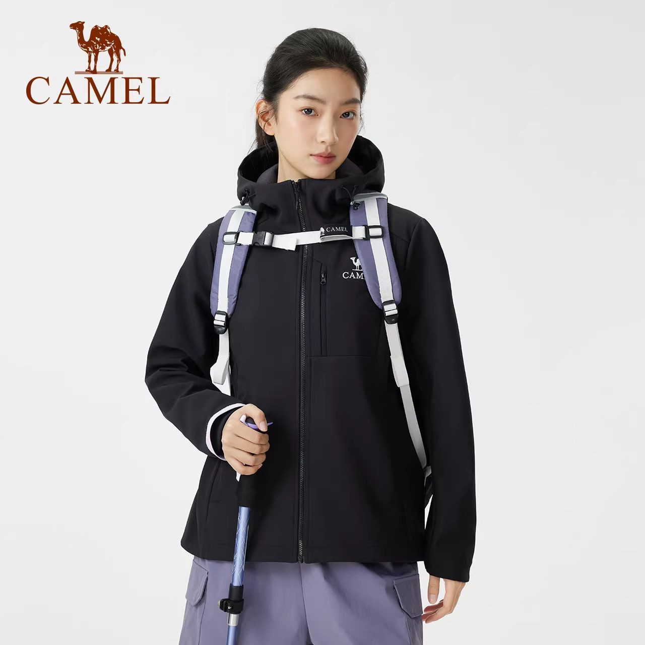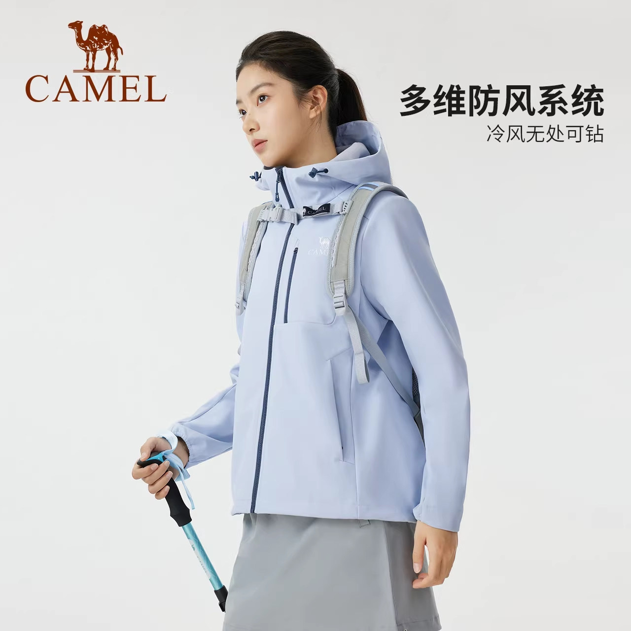 骆驼户外冲锋软壳衣女26春加绒防风防泼水抗静电徒步登山衣服男