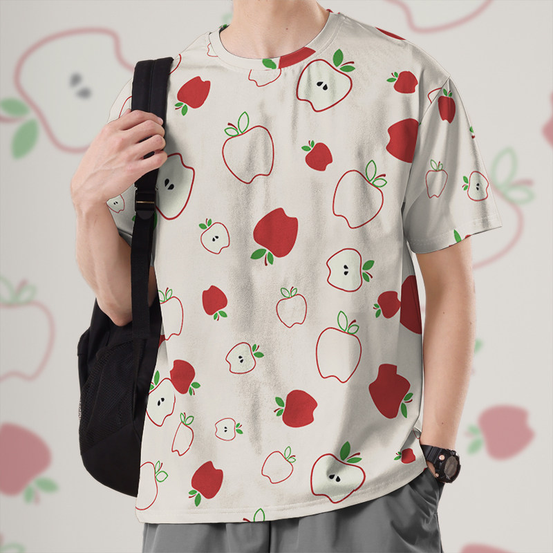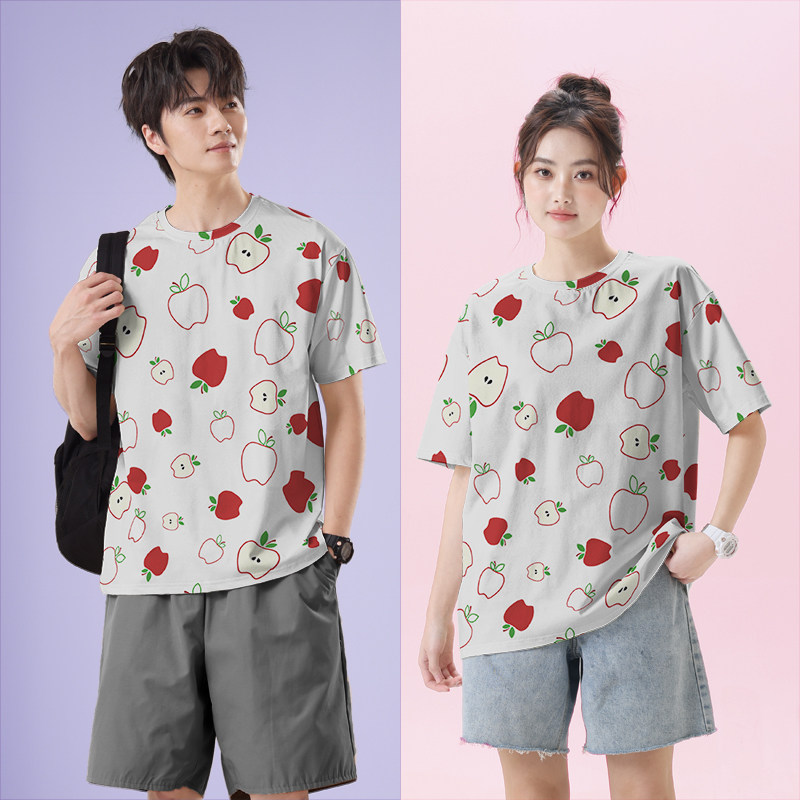 无界 0015设 港风苹果图案水果线条简约趣味ins大码 速干T恤男女装
