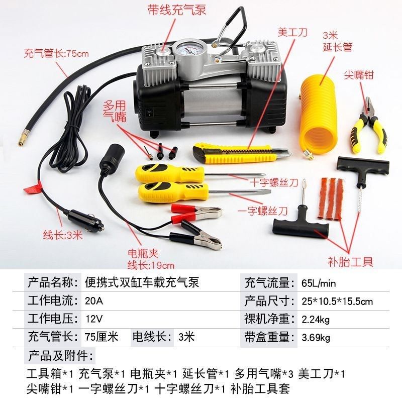 爱车保姆车载充气泵n打气泵汽车用大功率小轿车多功能双缸高压车