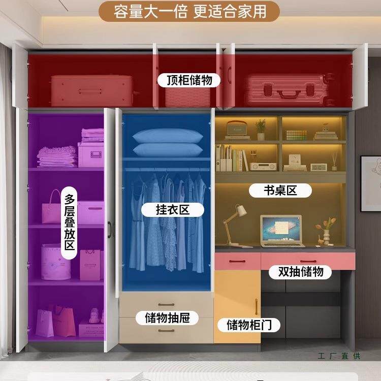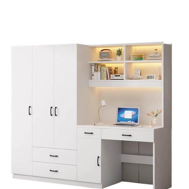 实木衣柜连书桌一体小户型卧室家用儿童房电脑桌子带书柜组合定